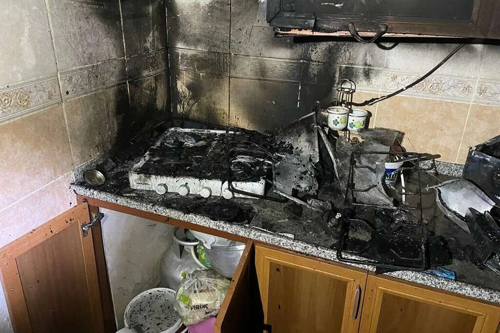 Burdur'da ocakta unutulan süt tenceresinin alev alıp mutfak dolabına sıçraması sonucu yangın çıktı.