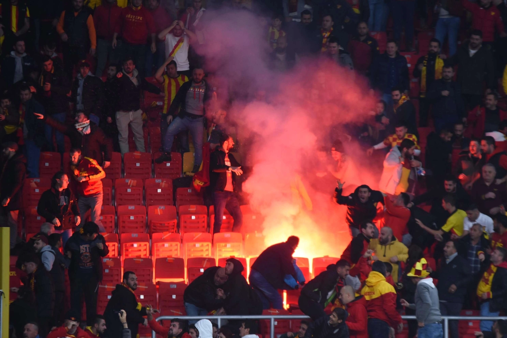 İzmir’de Gürsel Aksel Stadında 27 Kasım 2022’deki Göztepe-Altay maçında Altay taraftarları, 20. dakikada Göztepe seyircilerinin olduğu bölüme işaret fişeği fırlattı ve bir taraftar yaralandı. Müsabakanın 22. dakikada durdurulmasının ardından M.N.A. isimli Göztepe taraftarı, eline geçirdiği korner bayrak direğiyle Altay kalecisi Ozan Evrim Özenç’e saldırdı. Yaşanan olaylar sonucu hakemin isteğiyle futbolcular soyunma odasına giderken, yaklaşık 25 dakika beklemenin ardından müsabaka tatil edildi. M.N.A. ‘Kasten öldürmeye teşebbüs’ ve ‘Sporda Şiddet ve Düzensizliğin Önlenmesine Dair Kanuna muhalefet’ suçlarından tutuklanıp daha sonra serbest bırakırken, tribüne fişek atılarak bir kişinin yaralanmasına ilişkin soruşturmada ise gözaltına alınan 23 kişiden 19’u tutuklandı. Soruşturma çerçevesinde tutuklanan 18 kişi daha sonra serbest bırakılırken, tutuklu bulunan Furkan Ersanlı hakkında, ‘Kasten öldürmeye teşebbüs’ suçundan diğer 22 sanık için ‘Kasten öldürmeye teşebbüs suçuna yardım’, 11 sanık için ‘Tehlike arz edebilecek aletleri spor alanlarına sokmak’, diğer 11 sanık için de ‘Tehlike arz edebilecek aletleri spor alanlarında kullanarak müsabaka düzenini bozmak’ suçlarından cezalandırılmaları istendi.