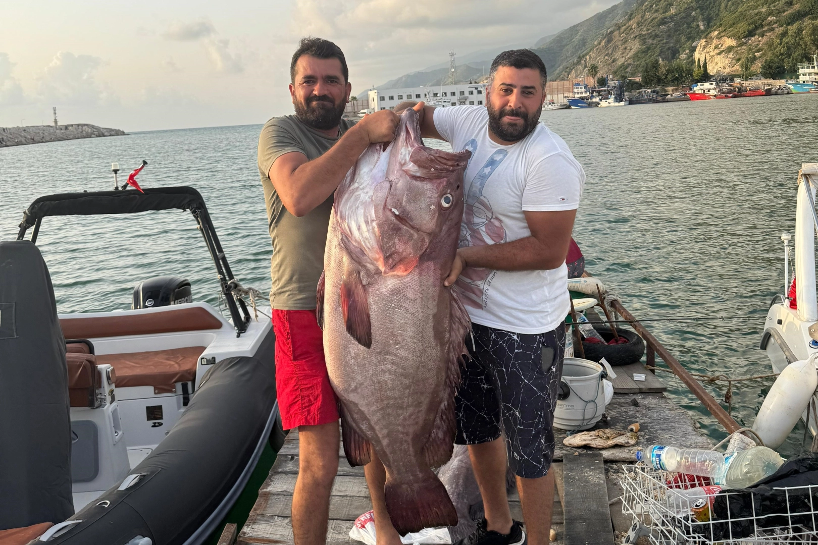 Samandağ ilçesinde balık avlamak için Akdeniz’e açılan balıkçı Atakan Gözüküçük’ün oltası devasa bir balığa takıldı. Uzun uğraşlar sonrası bota çekmeyi başardığı yaklaşık 1,5 metre boya ve 45 kilogram ağırlığa sahip devasa boyuttaki balığı gören Gözüküçük, şaşkınlık yaşadı. Sosyal medyada paylaşılan balığın görüntüleri, görenlerin ilgisini çekti. “Balık dönüşünde çok yorulduğumuz için artık kol kaldırmıyordu, tartamadık” Balığı yakalama anını ve yaşadığı şaşkınlığı anlatan Atakan Gözüküçük, “Oltamızı suya attık. Bana bir balık vurdu. Bu kadar büyük bir balık olacağını biz bile tahmin edemiyorduk, çıktığında gözlerimize inanamadık. Çok değerli ve inanılmaz bir balıktı. Sedat abimin bildiği yer, ben acemisiyim bu kadar büyük balıkların. Allah'tan takımlarım güzel bağlanmıştı. Oltayı kırmadan, boğuşarak ve zaferle dev balığı çıkarttık. Balık dönüşünde çok yorulduğumuz için artık kol kaldırmıyordu, tartamadık. 45 kilogramın üstünde bir balık. Ayrıyeten yani zaten normal bir eften püften bir oltayla çekilecek gibi bir balık değil. Kimse bu kadar büyük balık çıkacağını bilemiyordu. Bekle bekle aşağıdan bir tane kaya parçası, bir tekne, bir batık çıkartıyor çünkü artık ya olta kopacak ya aşağıdaki gelecekti ama sonunda çıktı. Canlı palamut balığına vurdu, tek bir iğne saplanmıştı. Yemi parçalamış. Adamakıllı yiyememiş bile ama tek iğneyle de çıkartmayı başardık” ifadelerini kullandı.