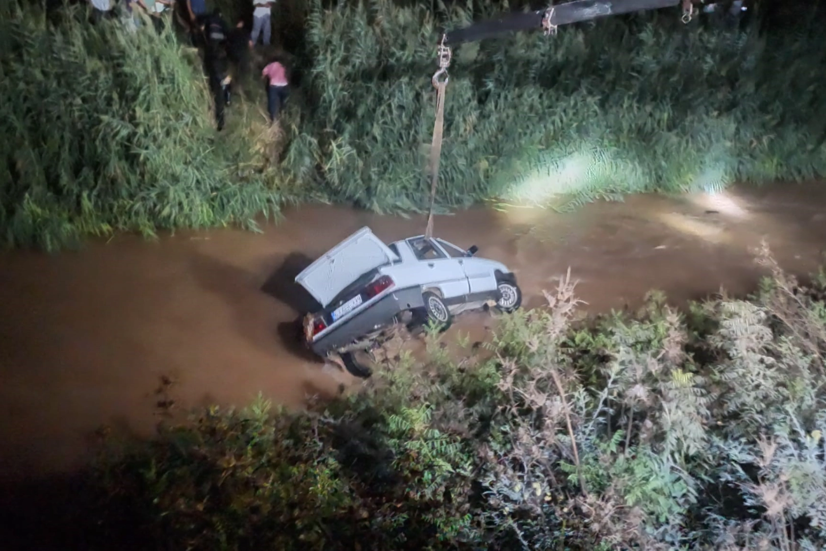 İlçe merkezine doğru ilerleyen Ali İnan yönetimindeki otomobil, sürücünün direksiyon kontrolünü yitirmesi sonucu sulama kanalına uçtu.