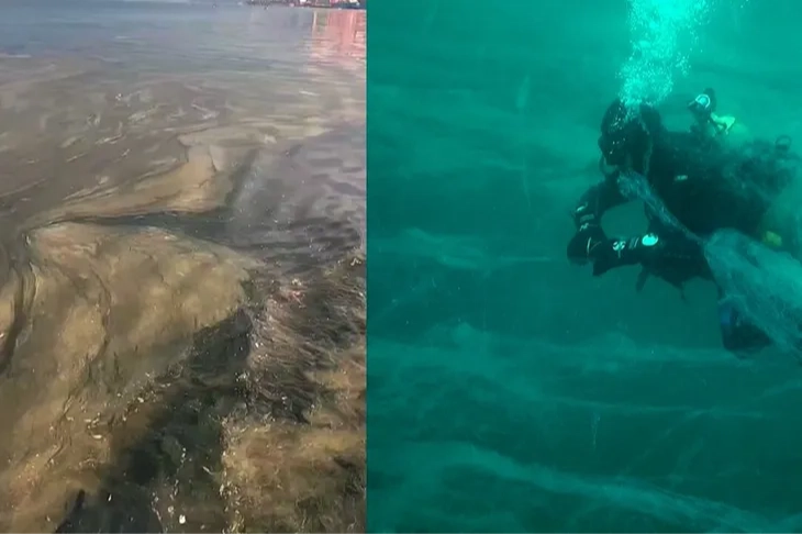 Müsilaj Yüzeyde! Dikkat iki görüntüye birlikte bakın! Soldaki görüntü Gemlik Körfezi (23 Ocak 2025, Gemlik Su Ürünleri Kooperatifi Başkanı Hüseyin DALAREL) deniz yüzeyini, sağdaki görüntü Erdek Körfezi (6 Kasım 2024) denizin altını gösteriyor. Suyun altı da yüzeyi de müsilaj… pic.twitter.com/gkXfVttbZc