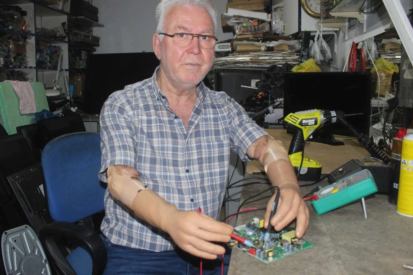 Giresun'un Görele ilçesinde yaşayan ve geçirdiği kazadan sonra iki kolunu da kaybeden Osman Kanbur, 37 yıldır protez kolları ile televizyon ve radyo tamirciliği yaparak geçimini sağlıyor.