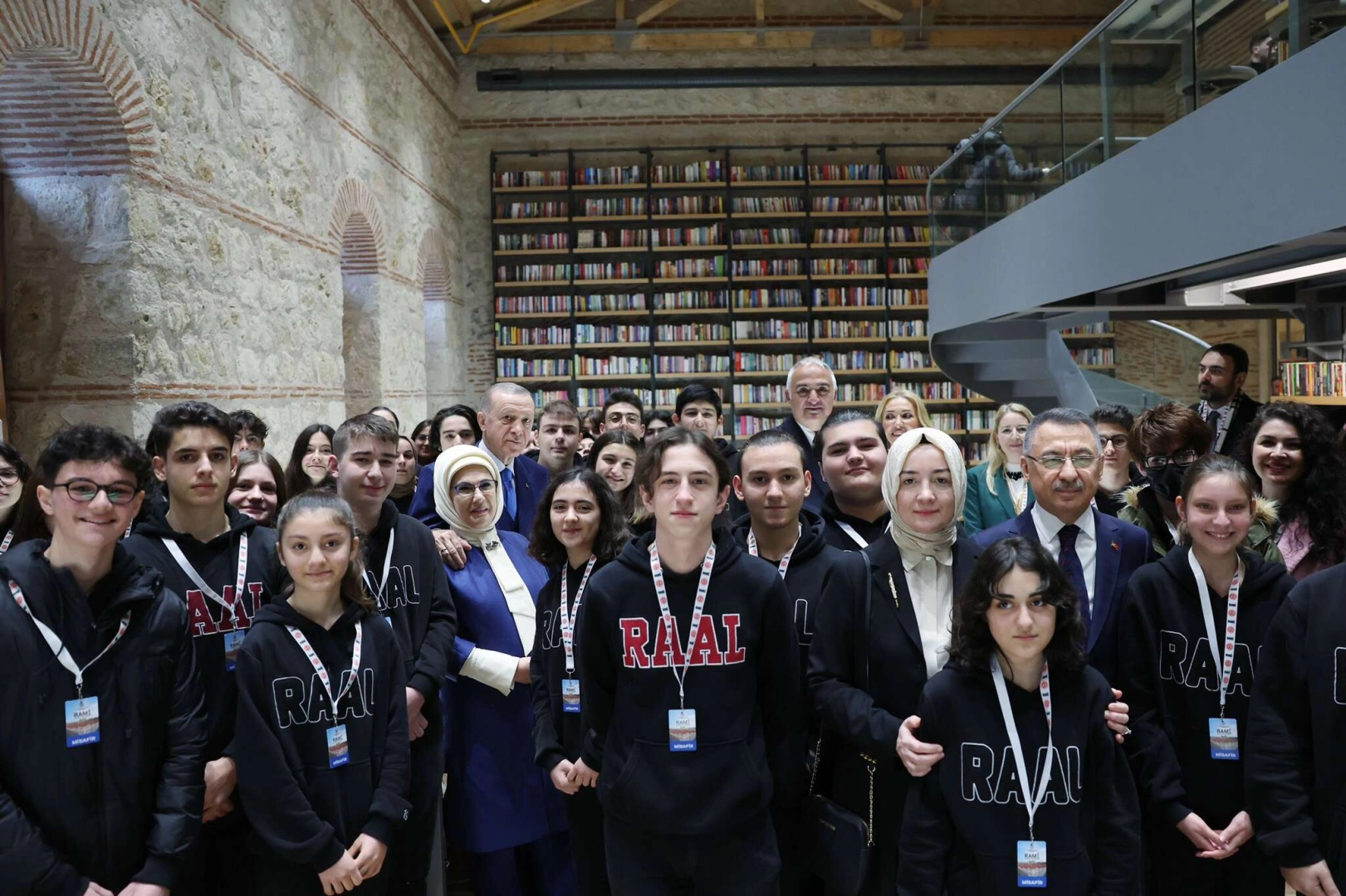Gençlerle bir arada olduğunu kaydeden Cumhurbaşkanı Erdoğan, “'Cumhurbaşkanım 5 dakikada okuldan buraya geliyoruz' dediler. Burada 'çayınızı, kahvenizi, çorbanızı içecek misiniz' İçeceksiniz, para yok. Yarın sabahtan itibaren bu uygulama da başlıyor. Şöyle geriye doğru baktığımızda kütüphanelerimiz ne kadar zengin, ne kadar yaygın, ne kadar hareketli ise medeniyetimiz o derece güçlü milletimiz o derece müreffeh olmuştur. Bizim medeniyetimiz kitapla, defterle, kalemle, mürekkeple, okumakla, anlamakla, sormakla, anlatmakla yoğrulmuş, ilimle, irfanla, hikmetle kıvamını bulmuştur. Duvarları kitaplarla dolu bir kütüphaneyi en kıymetli hazinelerden daha üstün tutan ecdadımız her kütüphaneyi cennetten bir köşke benzetmiştir. Ecdat onların eserlerini de bu ağaçların meyveleri olarak görmüştür. İnşallah biz de onlara layık oluruz” dedi. “Hükümete geldiğimiz günden beri adalet, hak, hakkaniyet ve fırsat eşitliği temelinde hiçbir ayrım gözetmeksizin ülkemizin her köşesini kuşatacak şekilde bu anlayış ile çalıştık”