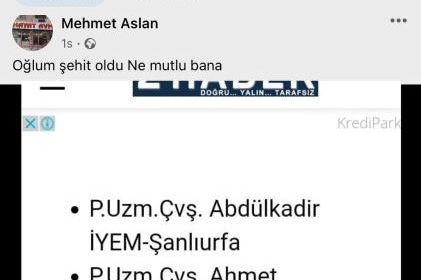 Kuzey Irak'taki Pençe-Kilit Harekatı bölgesinde teröristlerle çıkan çatışmada Piyade Er Kemal Aslan (22) şehit düştü. Şehit haberinin baba ocağına bildirilmesinin ardından şehit babası Mehmet Aslan, sosyal medya üzerinden oğlunun da aralarında olduğu 6 şehidin ismini paylaşarak, "Oğlum şehit oldu ne mutlu bana" ifadelerini kullandı. Paylaşım görenleri duygulandırdı.