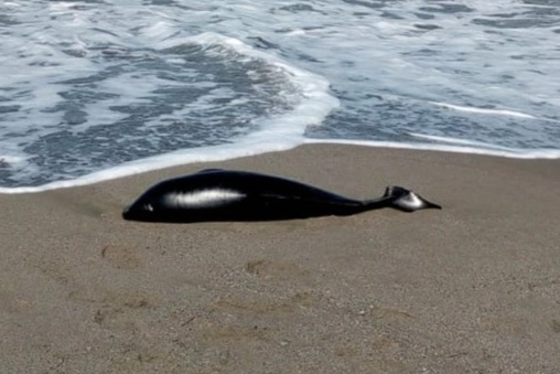 Koşu Mahallesi sahilinde dalgaların sürüklediği ölü yunus sahile vurdu.