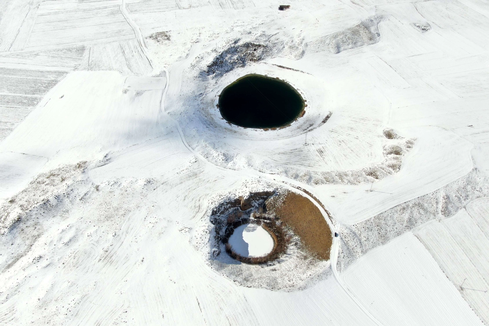 Sivas’ın Zara ilçesinde yan yana bulunan göllerden biri donarken diğerinin donmaması görenleri hayrete düşürdü.
