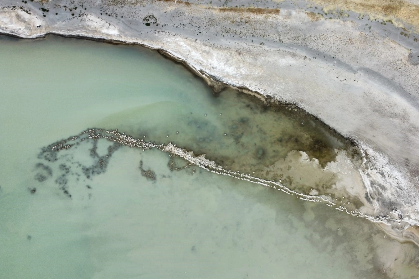 Bitlis'in Adilcevaz ilçesi sınırlarında bulunan Arin Gölü'nde, kuraklık ve iklim değişikliği, duvar kalıntıları ile mikrobiyalitlerin ortaya çıkmasına neden oldu.