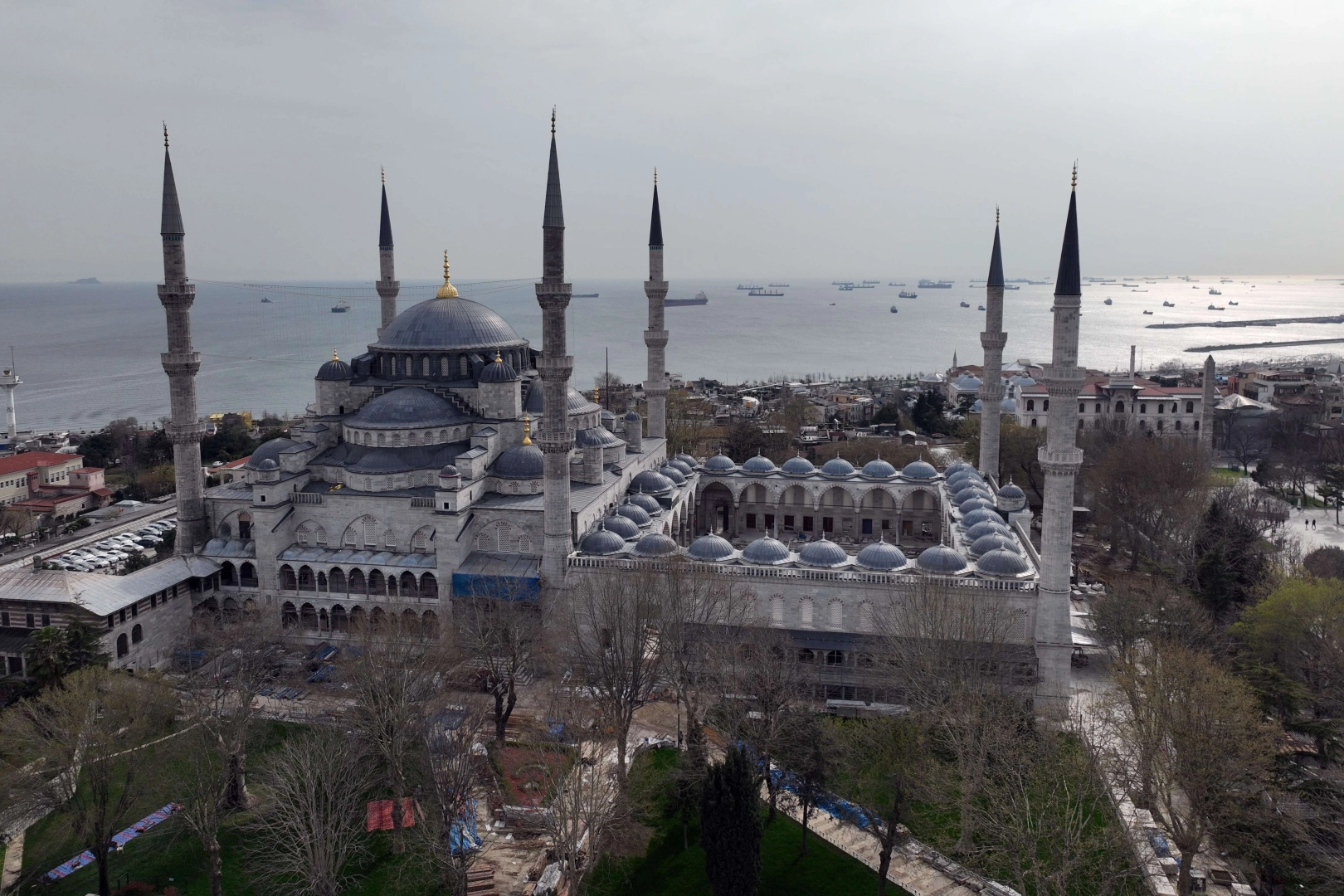 İstanbul’un simge yapılarından olan ve 6 yıldır restorasyon işlemleri devam eden Sultanahmet Camii 17 gün sonra Ramazan Bayramı’nda yeniden ibadete açılacak. Açılıştan önceki hazırlıkları devam eden caminin son durumu dron ile havadan görüntülendi.