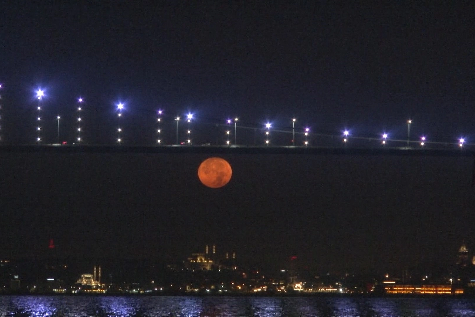 Ay'ın dünyaya en yakın noktada olması nedeniyle normalde göründüğünden daha parlak bir hale bürünmesi ile ortaya çıkan Süper Ay, İstanbul'un çeşitli noktalarından görüntülendi. 15 Temmuz Şehitler Köprüsü ve İstanbul'un boğaz manzarası ile birleşen Süper Ay seyirlik görüntü oluşturdu.
