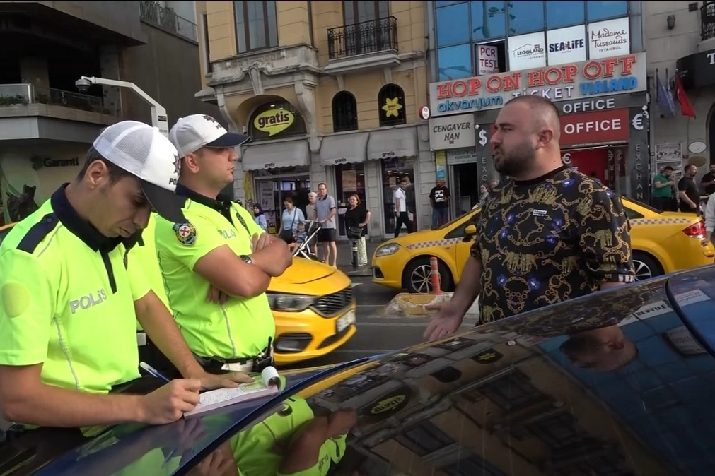 Taksim’de trafik denetimine takılan M.S. isimli sürücü, polis ekiplerini adeta çileden çıkardı. Abartı egzozdan 4 bin 64 TL, emniyet kemerinden 436 TL, trafik levhasına uymamaktan 436 TL olmak üzere toplamda 4 bin 936 TL ceza yiyen M.S. isyan etti. Trafik polislerine tehditler savuran M.S. ekiplere, “Senin maaşını kim veriyor?” diyerek hakaret ederken, yaşanan diyaloglar saniye saniye kaydedildi.