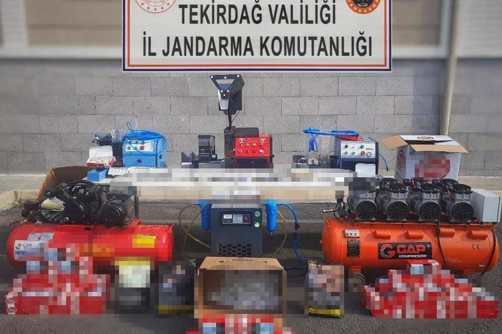 Tekirdağ'ın Çerkezköy ilçesi Fatih mahallesinde M.Y. isimli şahsın işyerinde Tekirdağ İl Jandarma Komutanlığı unsurlarınca yapılan aramada, 10 bin adet boş makaron, 5 bin adet dolu makaron, 3 kilogram bandrolsüz tütün, 3 adet tam otomatik kompresör ile çalışan makaron doldurma makinesi , 2 adet kompresör, 1 tütün nemlendirme makinesi ele geçirildi. Ele geçirilen malzemelerinin piyasa değerinin yaklaşık 395 bin TL olduğu öğrenildi. Şüpheli şahıs ifadesi alınmasını müteakip serbest bırakıldı.