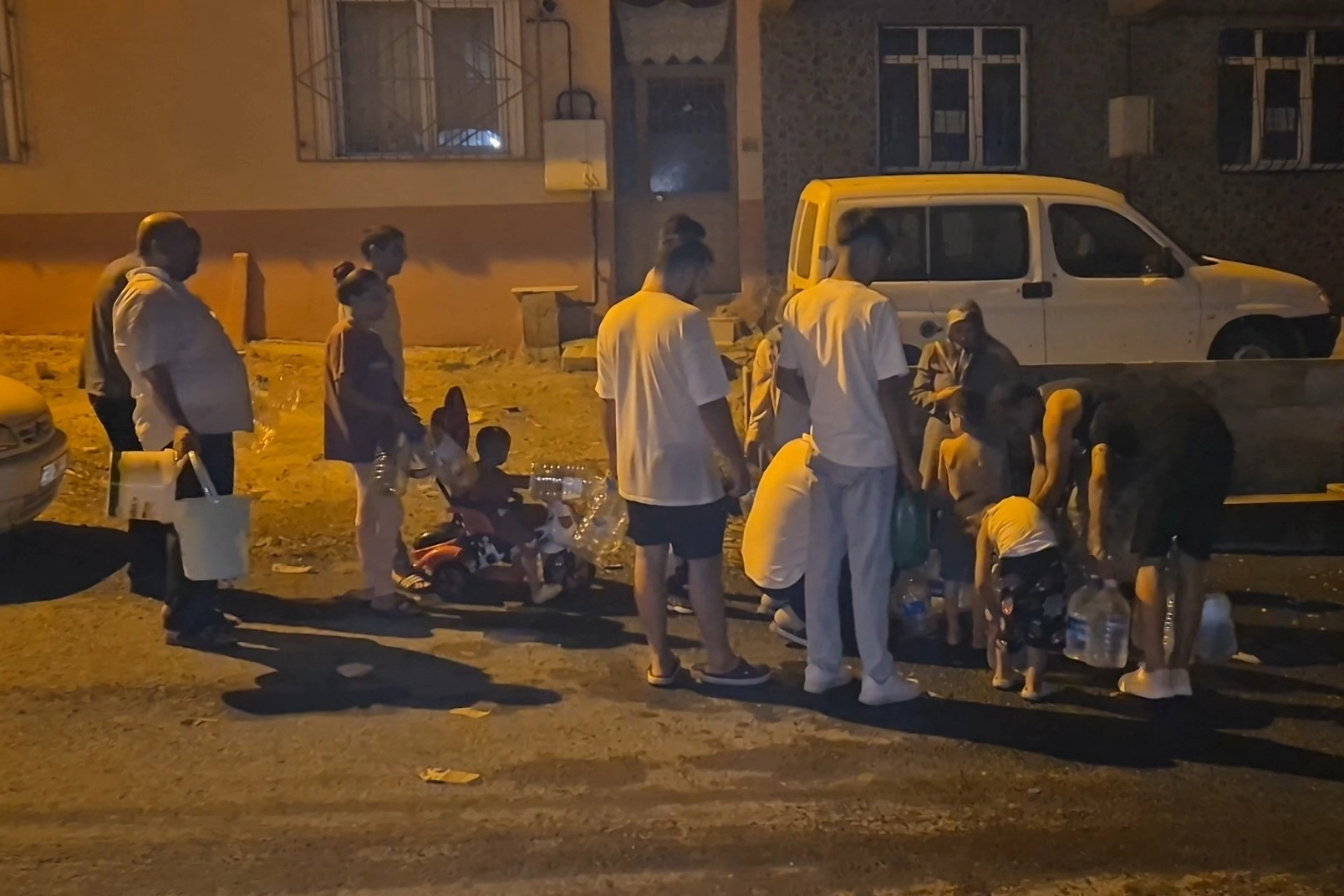 Özellikle Kumbağ Mahallesi’nde ellerinde bidonlarla sokağa çıkan vatandaşlar, cadde üzerinde yürüyerek duruma tepki gösterdi.