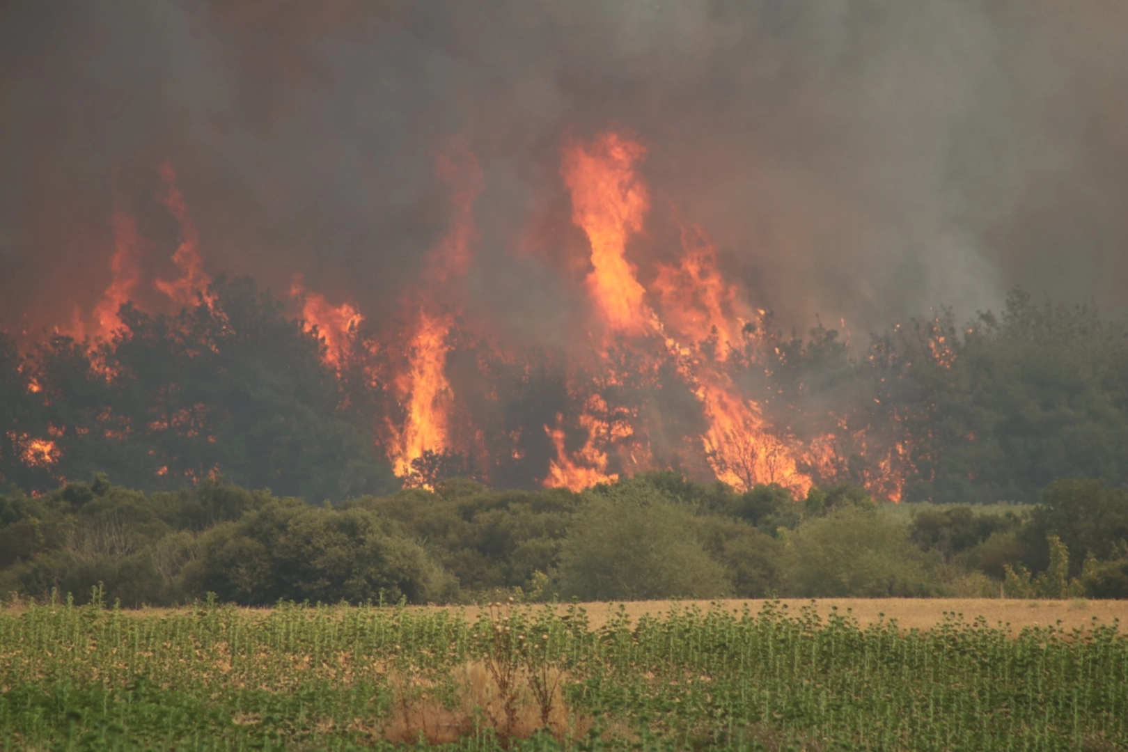 Tekirdağ'ın Şarköy ilçesinde orman yangınına müdahale sürüyor. Dün öğleden sonra başlayan yangın, rüzgarın etkisiyle geniş bir alana yayılırken, alevlerin yerleşim alanlarına sıçramaması için yoğun çaba harcanıyor. Şarköy ilçesine bağlı 2 köy tedbir amaçlı tahliye edildi. Yangın bir yandan da dron ile havadan görüntülenirken, gökyüzüne yükselen dumanlar kilometrelerce uzaklıktan görülebiliyor. Yangına Orman Genel Müdürlüğü ekiplerinin yanı sıra jandarma, emniyet, AFAD, itfaiye ve sağlık ekiplerinden yüzlerce personel müdahale ediyor. Şehrin neredeyse tüm kamu kurumlarından personelin seferber olduğu yangında, yerleşim alanlarını korumak için karadan ve havadan yoğun müdahale devam ediyor.
