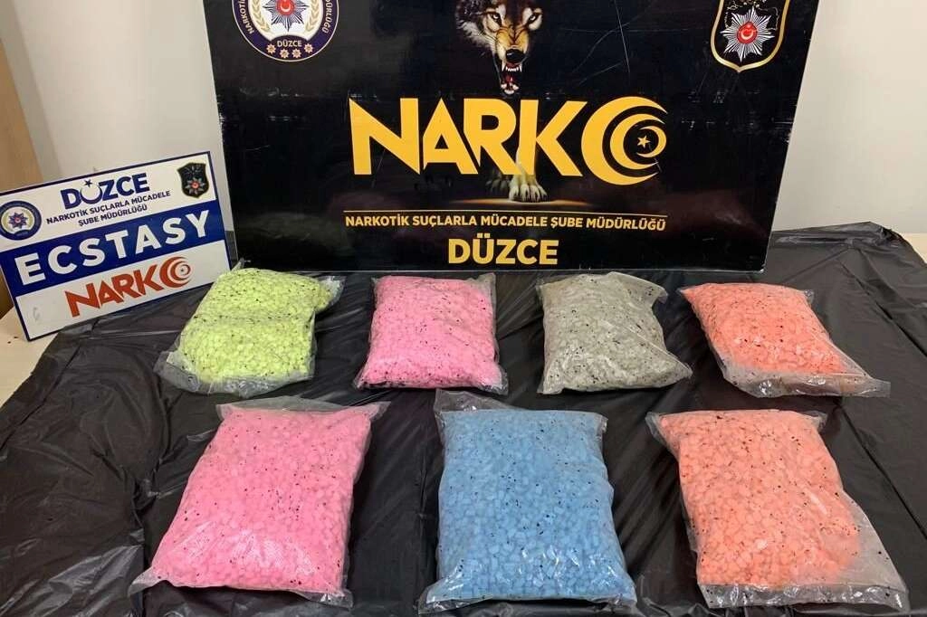 Yapılan aramada otomobilin gizli bölmelerine saklanmış çanta içinde 34 bin 589 adet ecstasy hap ele geçirildi. Otomobilde bulunan 1 kişi gözaltına alındı. Düzce'de ilk kez bu kadar yüksek miktarda uyuşturucu hap ele geçirildiği bildirildi.