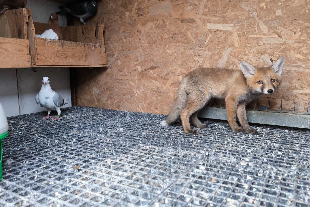 Uysal ailesinin bahçesinde güvercinlerle aynı kümesleri paylaşıp adeta kümes bekçisi olan sevimli tilki sağlığına kavuştuktan sonra ait olduğu doğaya salınacak.