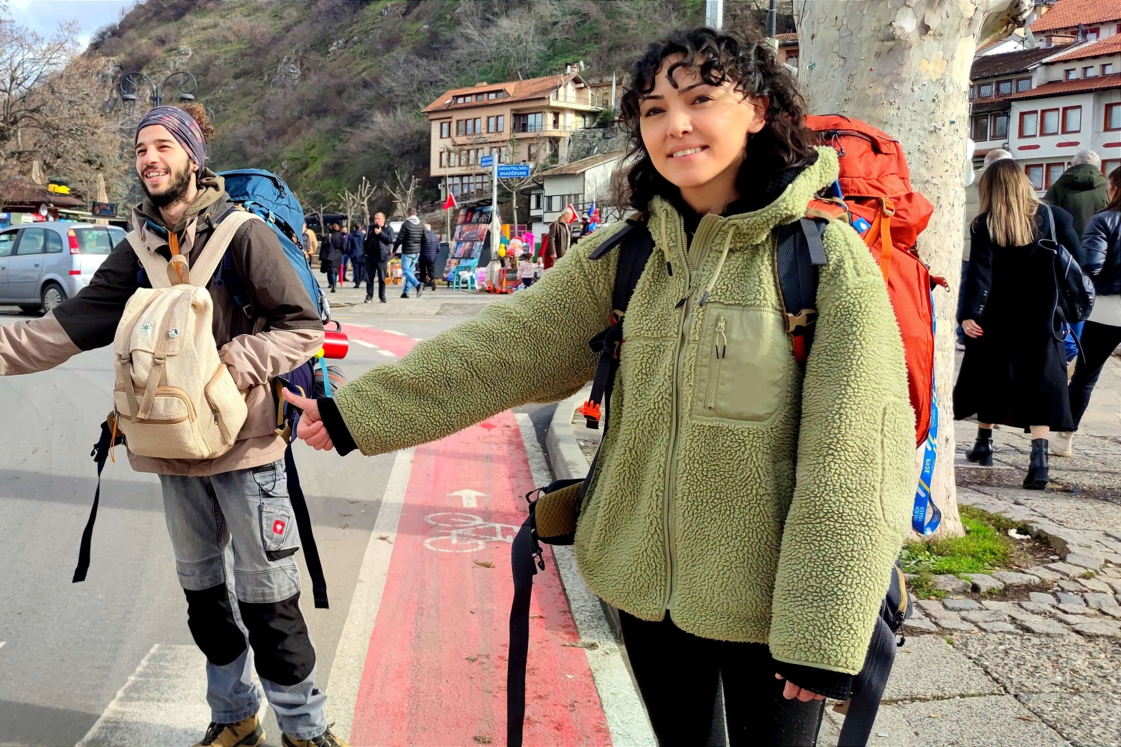 Türkiye’den otostop çekerek yollara düşen Türk çift, el işi bileklik satarak 25 günde Kuzey Makedonya, Arnavutluk ve Kosova’yı turladı.