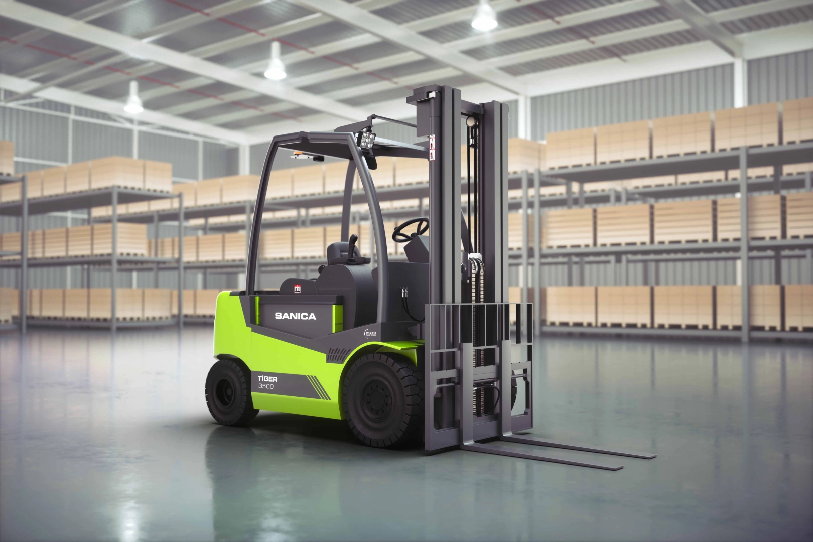 6.5 METRE Asansör uzunluğu ile en yüksek rafları bile kolaylıkla düzenleyen, aynı zamanda, 3.5 Ton kaldırma kapasitesi ile en ağır yükleri rahatlıkla istifleyip depolama alanlarında üstün manevrası ile fark yaratan TIGER düşük elektrik tüketimi ile fabrika giderlerinde maksimum performans sergileyerek her geçen gün kullanıcı memnuniyetini üst sıralara çıkarıyor. Sanica TIGER Forkliftler hakkında merak edilen soruların başında tabiki de tüketim miktarı, kesintisiz çalışma şartlarında kullanılan batarya ömrü geliyor. Saatte 60Ah’lik düşük enerji tüketimiyle operasyon yoğunluğuna bağlı olarak 6 ila 8 saat kesintisiz çalışma performansı sunan TIGER Forkliftler’de akü kullanım ömrü, normal çalışma şartları baz alındığında Traksiyoner akülerde 5 Yıl, Lityum akülerde 10 yıl olarak kullanım ömrü sunuyor.