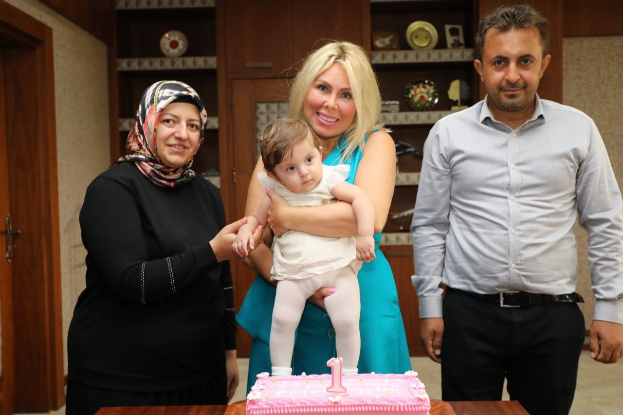 Türkiye’nin ikinci rahim nakliyle doğan bebeği olan Özlenen bebek ve Erdem ailesi nakli gerçekleştiren ve dünyaya gelmesinde büyük emekleri olan Akdeniz Üniversitesi Rektörü Prof. Dr. Özlenen Özkan ile birinci yaşını kutladı.