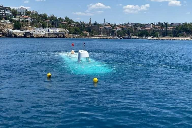 Denizaltının 2015 yılında Türkiye’ye getirildiğini belirten kaptan Aycan Zağra, “2017 yılından bu yana turistik denizaltı dalışlarını gerçekleştiriyoruz. Gün içerisinde birçok dalışımız oluyor. Kapasitesi 44 kişidir, 2 tane de kaptan olarak görev yapıyoruz. Kaleiçi bölgesinden saat başlarında çıkarak 350 metre açıkta bulunan St. Didier batığına gidiyoruz. Sonra 20 metre dalıyoruz. Bizimle beraber 2 dalgıç gelerek yolcularımıza animasyonlar yapıyor. Batık gemi 110 metre uzunluğu var. 30 metre derinlikte bulunuyor, 20 dakika denizaltında kalıyoruz” dedi.