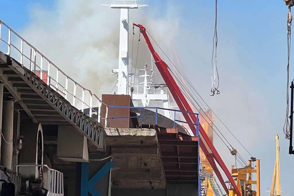 Tersanede bulunan kuru yük gemisinde sebebi bilinmeyen nedenle yangın çıktı.