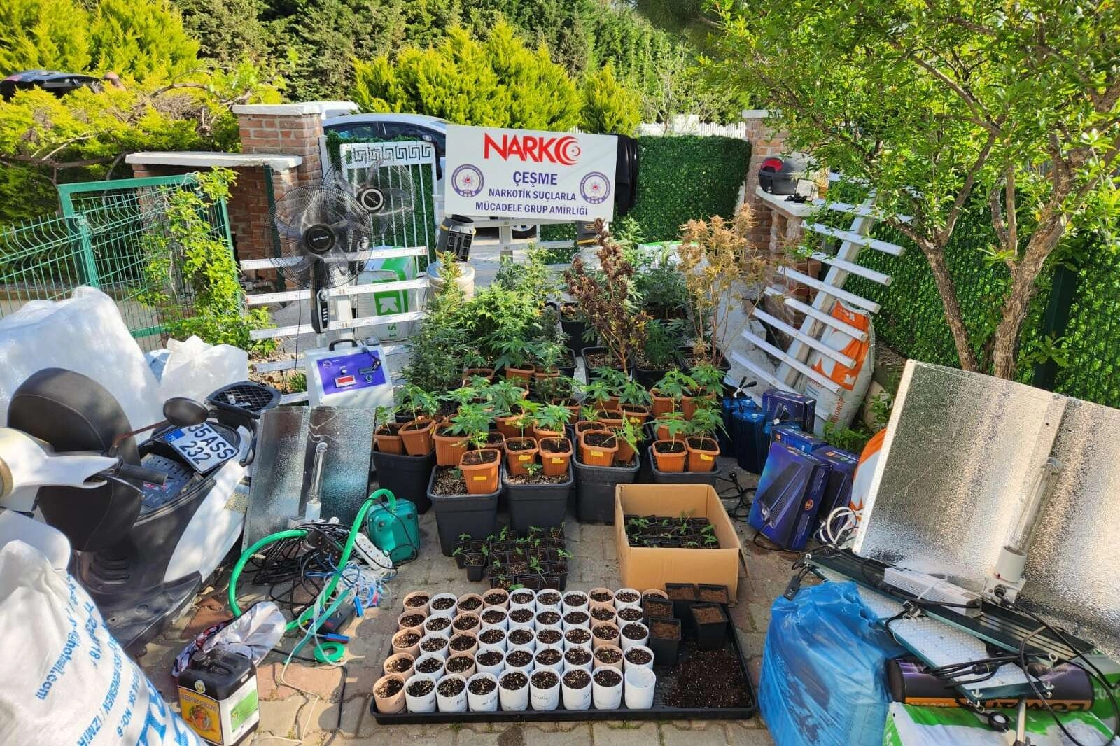 İzmir İl Emniyet Müdürlüğü Narkotik Suçlarla Mücadele Şube Müdürlüğü ve Çeşme İlçe Emniyet Müdürlüğü ekipleri, ilçede uyuşturucu madde ticareti yaptığı belirlenen şüphelilere yönelik çalışma yürüttü.