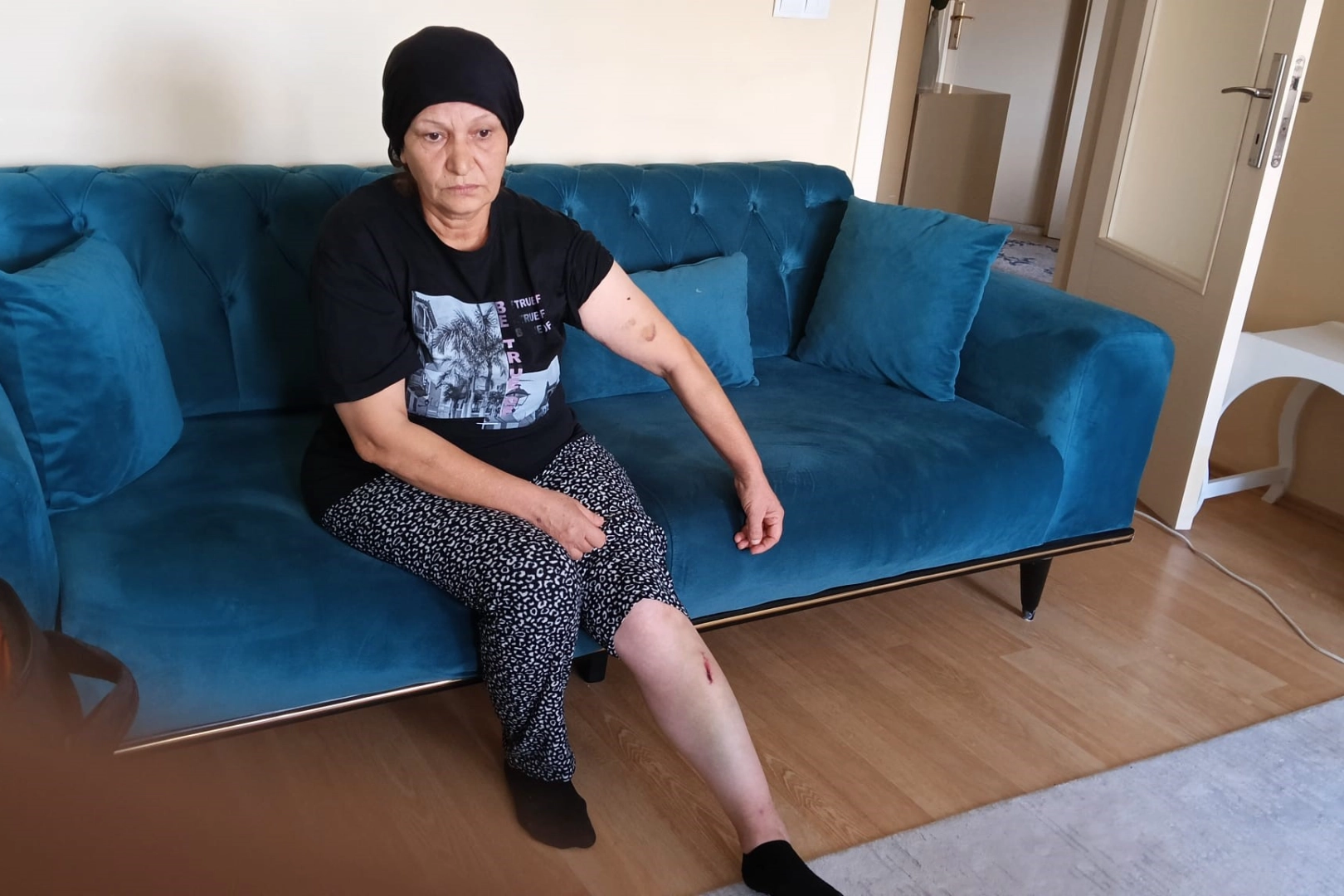Evden çıkarılmak için kendisine yaşatılan zor durumlardan bahseden Kara, "En son üzerime bir kadını yolladılar. Ben de karşılık verdim. Beni 'seni öldürmeyeceğim ama sakat bırakacağım' diyerek merdivenden yuvarlayıp bıçakladı. Ben de en sonunda polise gidip şikayetçi oldum. Şu anda evimden dışarı çıkamıyorum. Korkuyorum. Elektriğimi ve suyumu kestiler. 20 gündür su yok evimde. Eşyalarımı kullanamıyorum. Şu anda çıksam sokakta kalırım. Gidecek hiçbir yerim yok. Benim paramı vermediler, sigortamı da yapmadılar. Benim yerime bana saldıran kadını işe koymak istiyorlar. İşe aldıkları diğer kişiler kapıma gelip 'buradan çıkacaksın' deyip küfür ve hakaret ettiler. Arkamdan alay edip güldüler. Komşularımın verdikleri eşyaları elimden aldılar" ifadelerini kullandı. "BACAĞIM, KOLUM VE SIRTIM ÇOK AĞRIYOR"