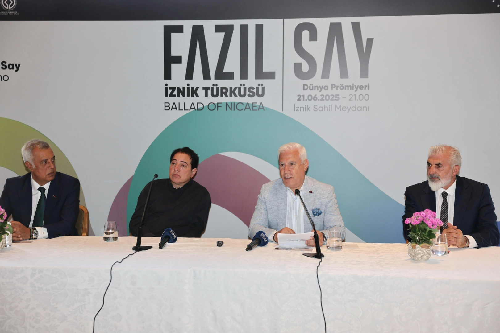 Ünlü piyanist ve besteci Fazıl Say ise konuşmasında İznik’in tarihsel önemine dikkat çekti. Antik dönemlerden Bizans’a, Selçuklu’dan Osmanlı’ya kadar birçok medeniyete ev sahipliği yapan İznik’in, aynı zamanda Birinci Konsil gibi önemli olaylara sahne olduğunu hatırlattı. Say, “İznik bir dünya mirası. Bu kültürel mirası anlatmak için sadece turizm tanıtımı yetmez; kalıcı eserler de gerekir. Ben de bu düşünceyle, Bursa Büyükşehir Belediyesi’nin davetiyle İznik’in hikayesini müzikle anlatmayı amaçladım” dedi. Eserin isminin İznik Türküsü (İngilizce adıyla Ballad of Nicaea) olduğunu açıklayan Say, eserin içinde insan sesinin de bulunduğunu ve bu yönüyle türünün tek örneği olduğunu söyledi. Yaklaşık 17-18 dakika süren eserin, dinleyicilere İznik’in tarihine içsel bir hayal yolculuğu yaşatacağını dile getiren Say, “Soprano Görkem Ezgi Yıldırım’ın muhteşem sesiyle hayat bulacak olan bu eser, yıllar sonra da yaşatılmaya devam edecek. 21 Haziran’da, İznik Gölü’nün büyüleyici doğasında herkesi bu özel konsere davet ediyoruz” dedi. Toplantı, Başkan Mustafa Bozbey ve Fazıl Say’ın basın mensuplarının sorularını yanıtlamasıyla sona erdi.