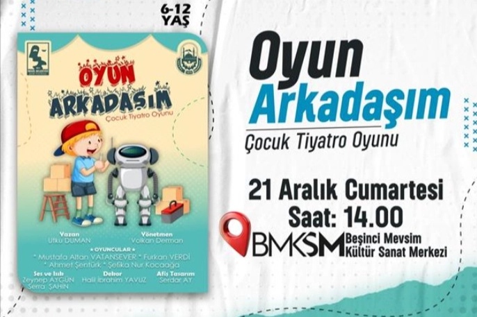İnegöl Belediyesi çocukları da tiyatro gösterileriyle buluşturmaya devam ediyor. Her hafta Cumartesi günü 14.00’da Beşinci Mevsim Kültür Sanat Merkezinde yapılan çocuk tiyatro gösterileri kapsamında 21 Aralık Cumartesi günü “Oyun Arkadaşım” isimli gösteri İnegöllü miniklerle buluşacak.