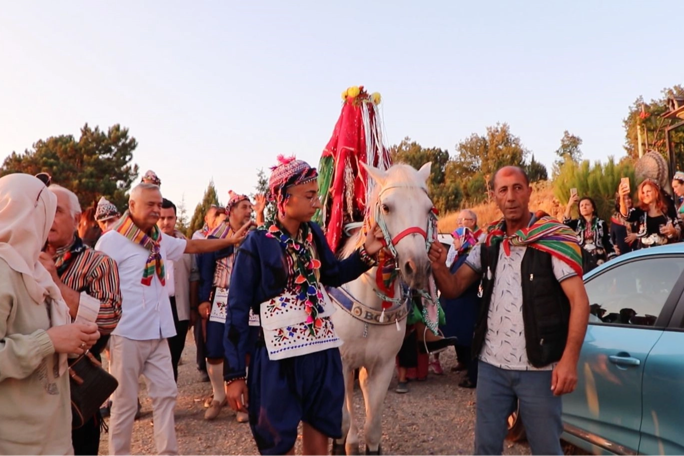 Yörük-Türkmen kültürünün yaşatıldığı düğünde gelin ve damat, geleneksel kıyafetler giydi. Köy meydanına kurulan Yörük çadırında, yerel sanatçı Mehtap Takmalı'nın türküleri eşliğinde kına gecesi düzenlendi. Gelinin ellerine kına yakılırken duygusal anlar yaşandı.