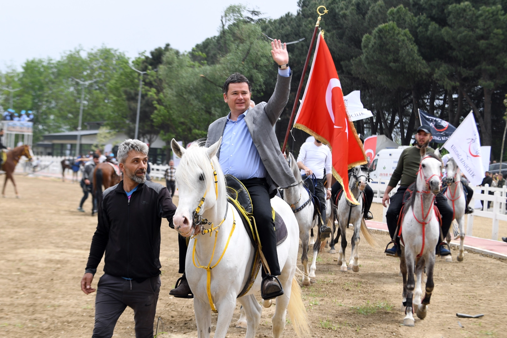 Osmangazi Belediye Başkanı Erkan Aydın, yarış alanına ata binerek giriş yaptı.