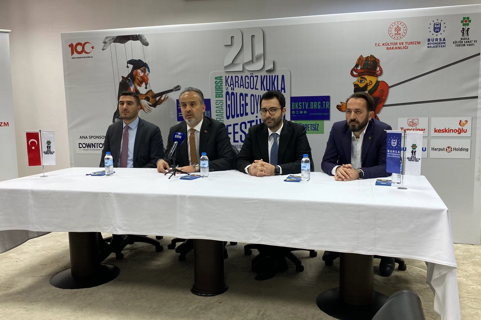 Bursa Büyükşehir Belediye Başkanı Alinur Aktaş, Bursa Kültür, Sanat ve Turizm Vakfı Başkanı Sadi Etkeser ile birlikte düzenlediği basın toplantısında, festival takvimini kamuoyuna duyurdu. Bursa’nın uzmanlar tarafından, gölge oyunu geleneğinin başlangıç noktası olarak gösterildiğini hatırlatan Başkan Aktaş, “Gölge oyunu olan Karagöz-Hacivat geleneği kültür tarihimizin en önemli unsurlarının başında geliyor. Şehir kültürümüz için ise bambaşka bir değeri var. Çünkü dünya gölge oyunu geleneğinin başkişileri arasında yer alan Karagöz ve Hacivat Bursa kökenli. Şehrimizin en önemli soyut kültürel değeri, hatta simgesi olan Karagöz ve Hacivat, tasavvufi boyutuyla da özgünlüğünü korumaktadır. Biz de Bursa Büyükşehir Belediyesi olarak bu konuda üzerimize düşen görevin bilinciyle çalışıyoruz. Türk gölge tiyatrosu 'Karagöz'ün 2009 yılında UNESCO tarafından Türkiye’nin somut olmayan kültürel mirası kabul edilerek, Dünya Somut Olmayan Kültürel Miras Listesi’ne dâhil edilmesi festivalimizi daha da anlamlı kılıyor. Katkıları için Kültür ve Turizm Bakanlığımız ile ana sponsorumuz Downtown’a, yine desteklerini esirgemeyen Harput Holding, Keskinoğlu, Bursa Su ve Tunç Siper Okulları’na teşekkür ederiz. 11-16 Aralık 2023 tarihleri arasında gerçekleşecek. 20. Uluslararası Bursa Karagöz Kukla ve Gölge Oyunları Festivali’ne bütün sanatseverleri bekliyor, festivalimize emek ve destek verenleri kutluyorum” diye konuştu.