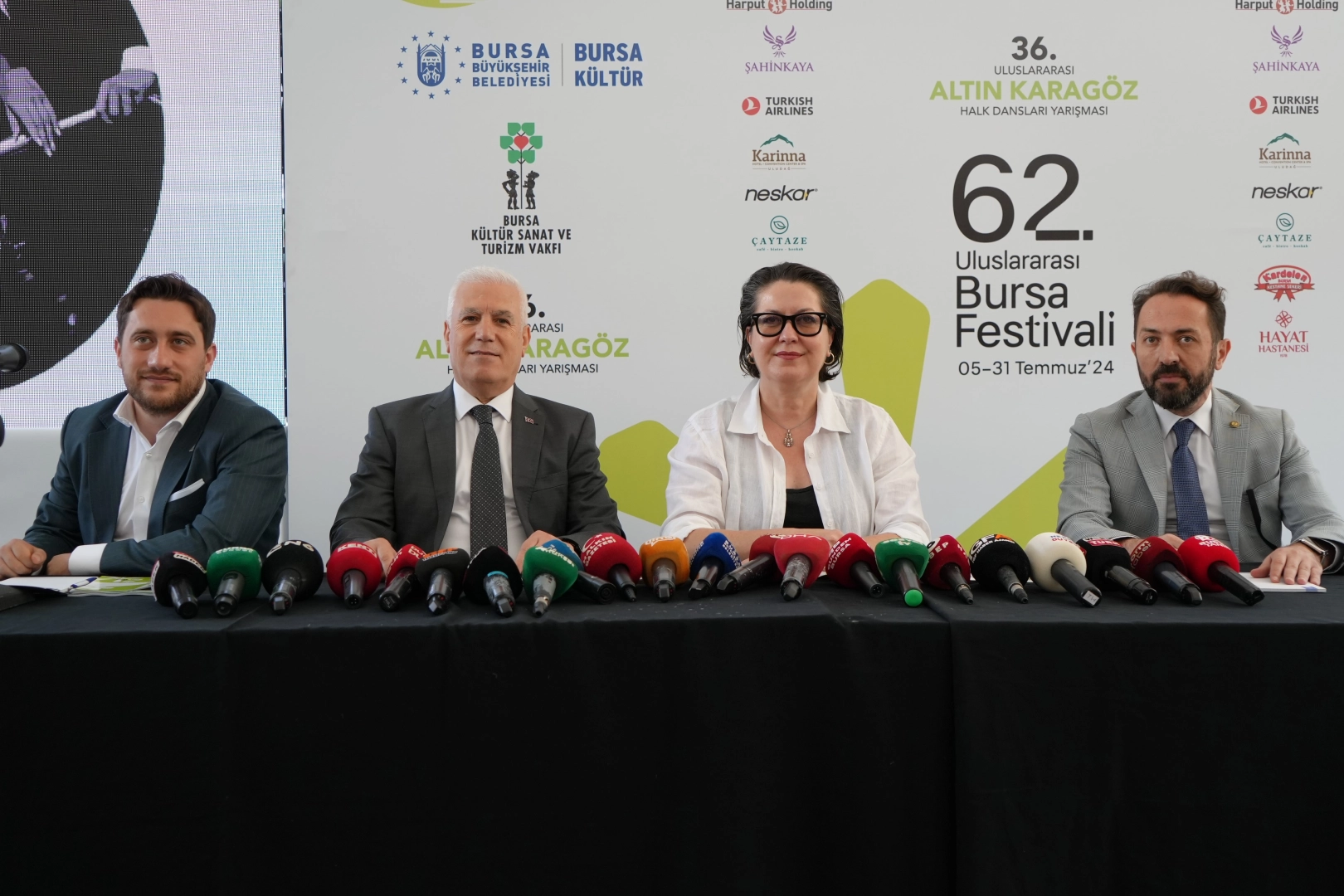 BKSTV Yönetim Kurulu Başkanı Metin Atış, Bursa’nın 1962 yılından bu yana devam eden Türkiye’nin en uzun soluklu tek etkinliği Uluslararası Bursa Festivali’nin bu yıl 62’sini gerçekleştireceklerini hatırlattı. Müzeyyen Senar ve Zeki Müren’in eşsiz sesleriyle başlayan kuşaktan kuşağa 62 yıldır devam eden bu öykünün 5 Temmuz-31 Temmuz tarihleri arasında Bursa’yı aydınlatmaya devam edeceğini söyleyen Metin Atış, Altın Karagöz Halk Dansları Yarışmasının da 36’ncısını gerçekleştireceklerini dile getirdi. Kültür, sanat kalitesini arttırmak amacıyla yapılan çalışmalara destek veren Bursa Büyükşehir Belediye Başkanı Mustafa Bozbey’e, vakfın onursal başkanı Fatma Durmaz Yılbirlik nezdinde Durmazlar Makine’ye Uludağ Premium’a, Harput Holding’e, Şahinkaya Koleji’ne, Özhan Marketler Zinciri’ne, Türk Hava Yolları’na, Karina Otel’e, Çay Taze’ye, Opel- Nescar’a, Kardelen Kestane Şekerleri’ne ve Hayat Hastanesi, Altın Karagöz Halk Dansları Yarışması’nın ana sponsoru Referans Holding’e, Durmazlar Holding’e teşekkür eden Atış, sanatseverleri ilk günün heyecanıyla yeni hatıralar biriktirecekleri festival coşkusuna eşlik etmeye davet etti. Atış, hem şehrin bu tür değerlerine sahip çıktıkları için hem de bunun bir parçası oldukları için mutluluk duyduklarını dile getirdi.