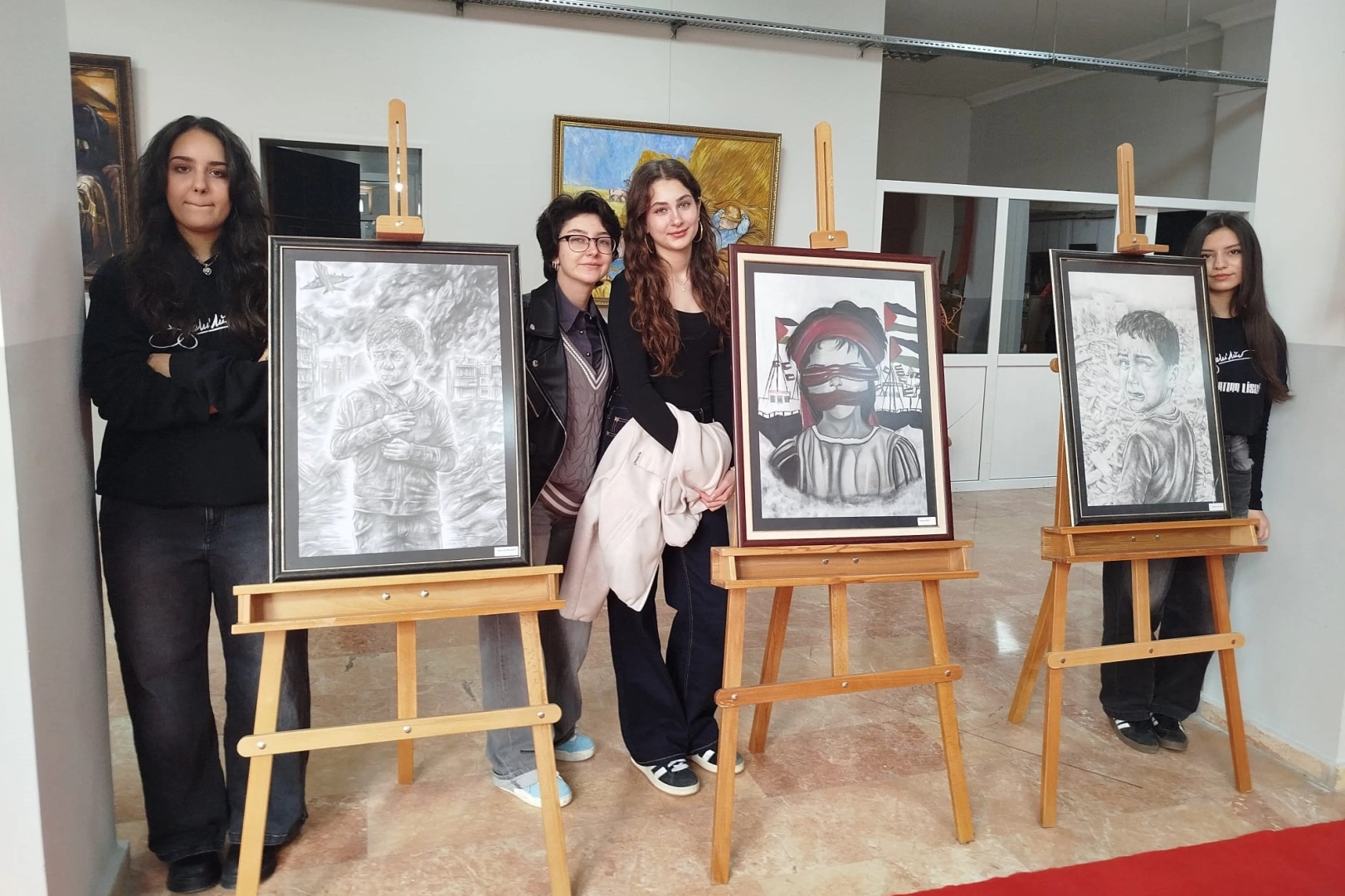 Bursa Zeki Müren Güzel Sanatlar Lisesi öğrencilerinin hazırladığı sergi, Gazze'deki savaş mağduru çocukların sessiz çığlıklarını resimlerle görünür kıldı.