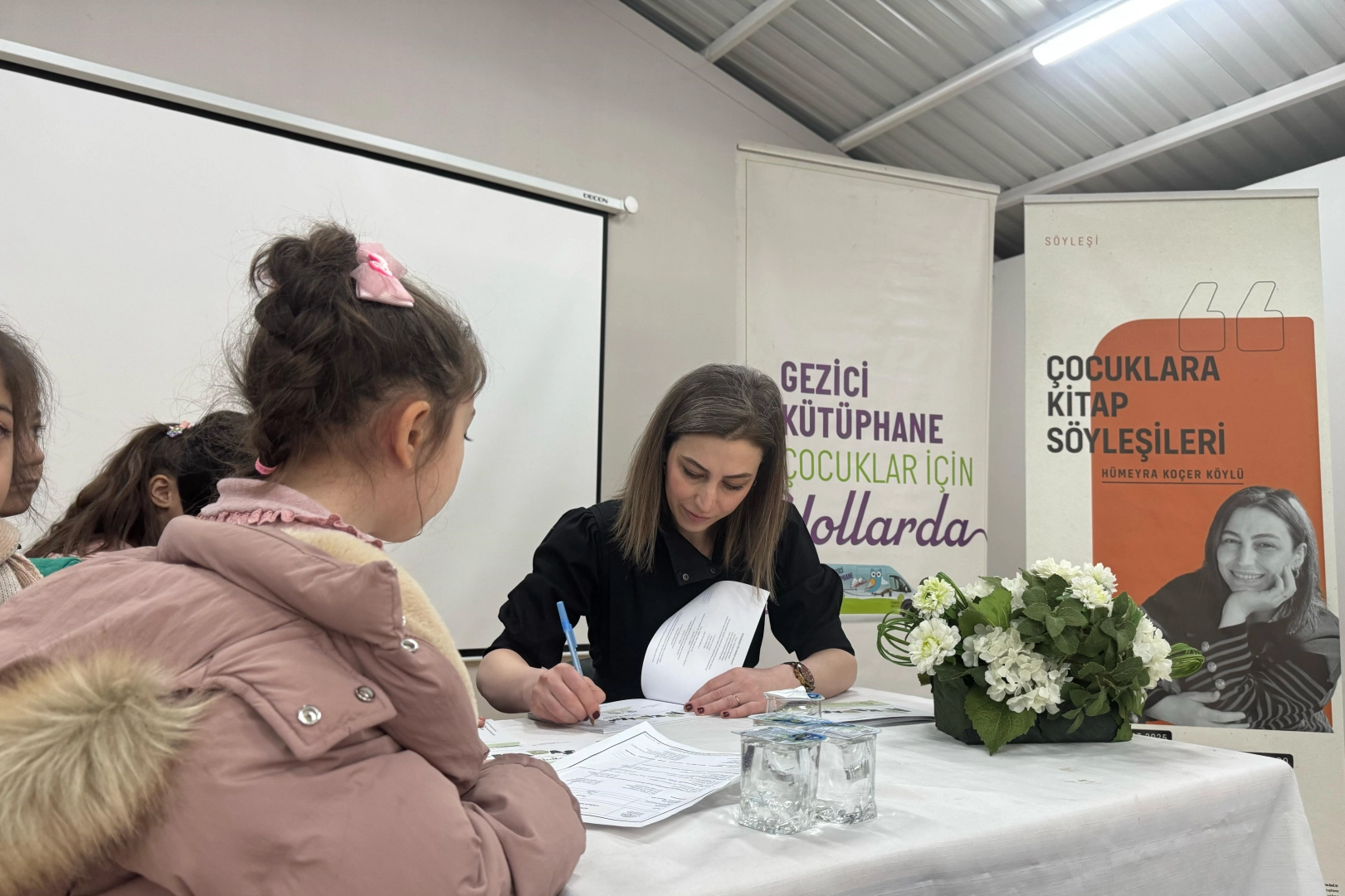 Etkinlikte minik okuyucuların sorularını da yanıtlayan Hümeyra Koçer Köylü, programların sonunda çocuklar için kitaplarını imzaladı.