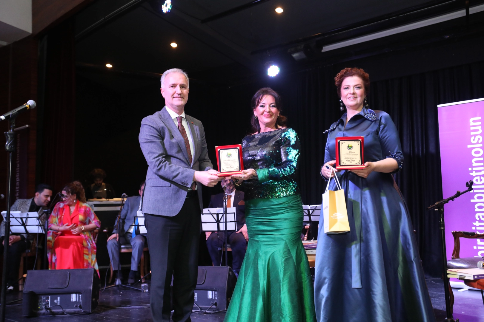 Sahnede kısa bir selamlama konuşması da yapan Başkan Taban, “Bu programı yapmaktan dolayı çok keyif aldım. Bu programın içerisinde; musiki var, kitap var, edebiyat var… Çok değerli bir ekip var karşımızda. Ben kendilerine yürekten teşekkür ediyorum. Kendilerine çok güzel hedefler koymuşlar. Bir bilet yerine bir kitapla buraya gelindi ve bu kitaplar da inşallah İnegöl’ümüzde bir okulumuza bağışlanmış olacak” dedi.
