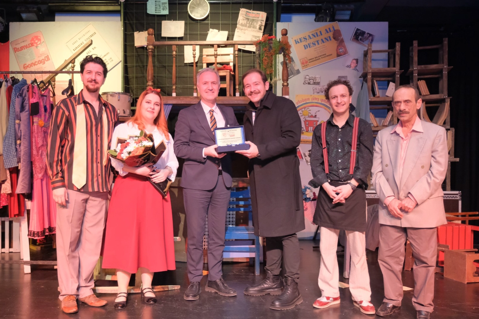 Başkan Taban, konuşma sonrası Ordu Büyükşehir Belediyesi Şehir Tiyatroları ekibine gecenin ve festivalin anısına hediye takdimi gerçekleştirdi.
