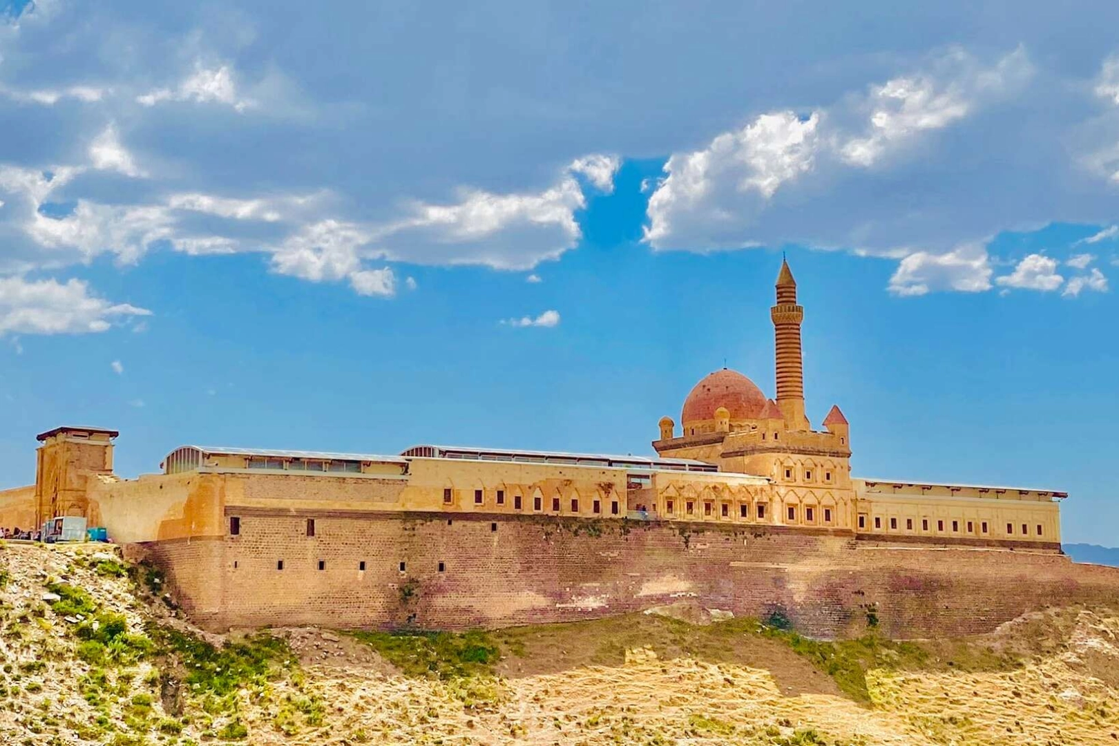 Osmanlı Devleti'nin Doğu Anadolu Bölgesi'ndeki en önemli eserlerinden biri olan ve sarp kayalıklar arasındaki bir tepede yer alan İshak Paşa Sarayı, ihtişamlı görüntüsünün yanında iç mimarisiyle de göz kamaştırıyor. Kartal yuvası görünümü, kalorifer sistemi ve bünyesindeki 116 oda, türbe, cami, surlar, iç ve dış avlular, divan ile harem salonlarının yanı sıra heybetiyle bölgeye önemli oranda gelir gelmesini de sağlayan İshakpaşa Sarayı, Türkiye'nin yanı sıra dünyanın her yerinden ağırladığı ziyaretçilerle tüm zamanların rekorunu kırarak 2022 yılında 295 bin 695 ziyaretçiyi ağırladı.