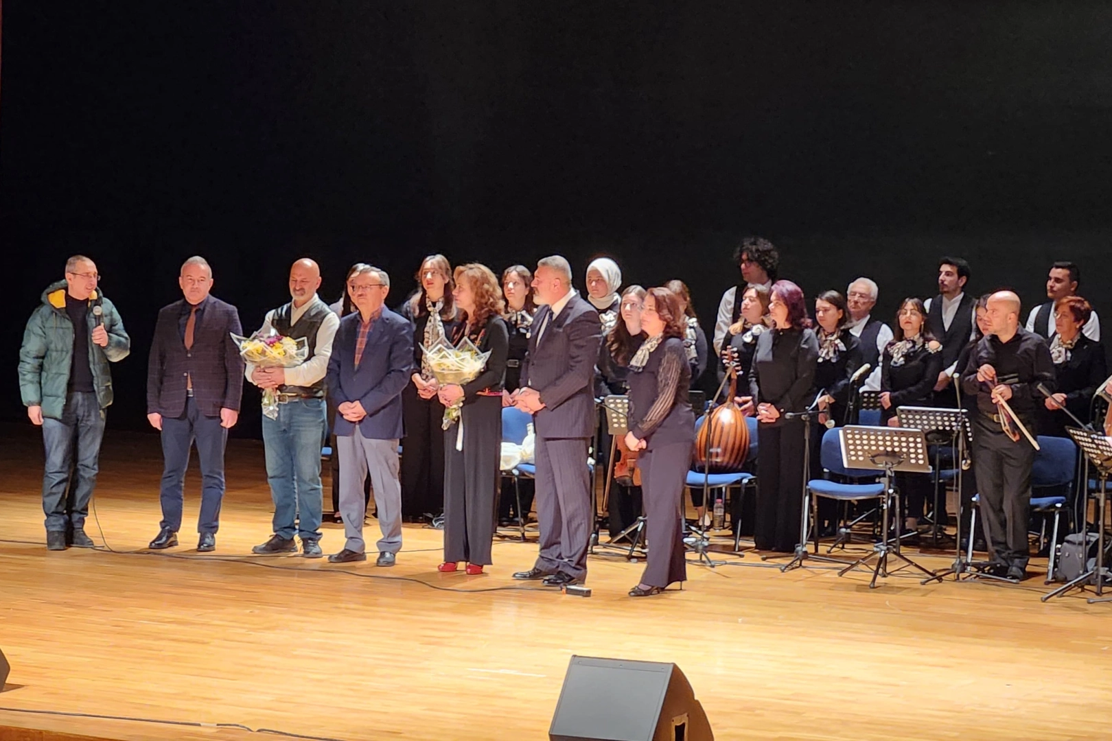 BUÜ Türk Sanat Müziği Topluluğunu Şef Süveyda Çolakoğlu’nun yönettiği, KARAKUM Müdür Yardımcısı Hayali Nevzat Çiftçi tarafından sahnelenen oyun sonrasında tüm ekibe koro üyelerine çiçek taktim edildi.
