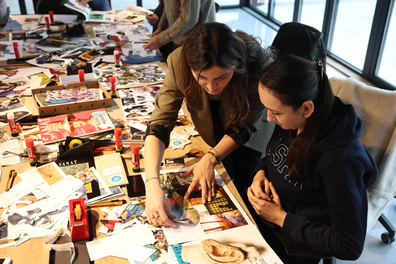Biz de bu atölyede zihnimizde haritalanmış duyguların, durumların bizde nasıl tetiklendiğini ortaya çıkarmaya çalışıyoruz. Örneğin dalış yapmaktan çok keyif alıyorsanız, bunu tam bir dalgıç resmi gibi değil de o hissin, hangi renklerle, dokularla, imajlarla sizin zihninize nasıl yerleştiği ya da bir anınızı bu şekilde zihnimizde canlanan halini kolajla en iyi resmedebiliriz diye uğraşıyoruz” dedi.