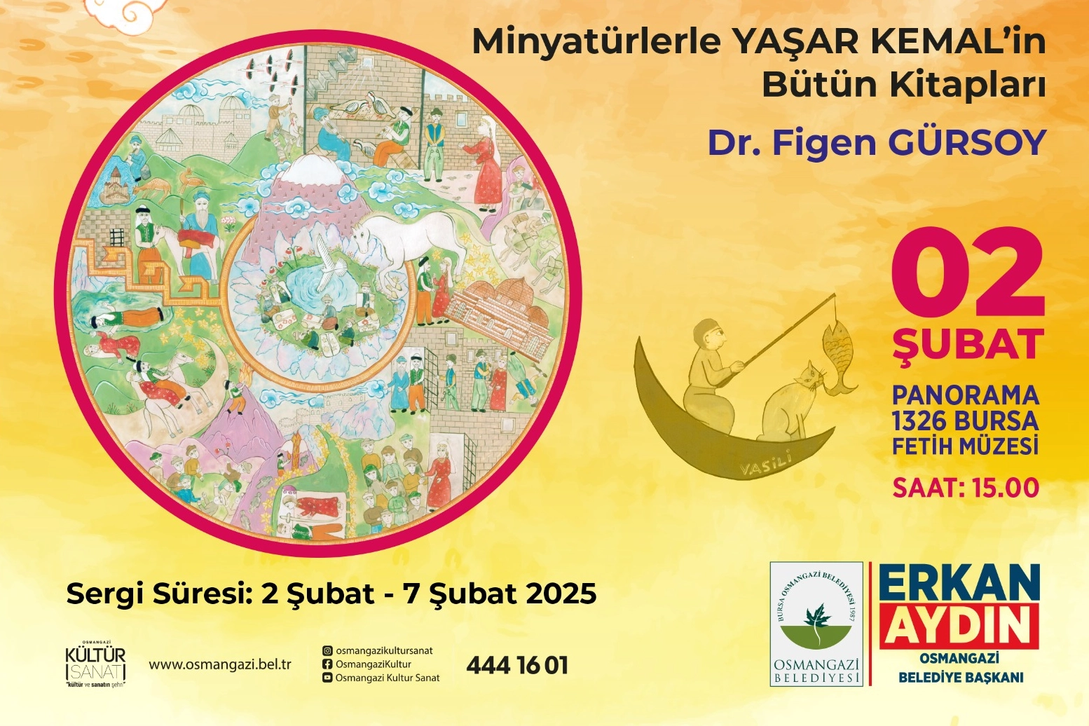 Osmangazi Belediyesi, Türk Edebiyatının çınarı Yaşar Kemal’in 57 eserini dört sene içerisinde minyatür sanatına yansıtan Dr. Figen Gürsoy’un ‘İnsan Dünyadır Minyatürlerle Yaşar Kemal’in Bütün Kitapları’ adlı minyatür sergisini, Osmangazililer ile buluşturuyor. Panorama 1326 Bursa Fetih Müzesi’nde 02 Şubat Pazar günü saat 15.00’da açılışı gerçekleştirilecek olan sergi, Anadolu’yu; insanını, kültürünü, folklorunu, doğasını, iklimini, bitkisini, duygusunu, tavrını iyi yazmış yazarlardan biri olan Yaşar Kemal’in kitaplarının minyatürlerinden oluşuyor.