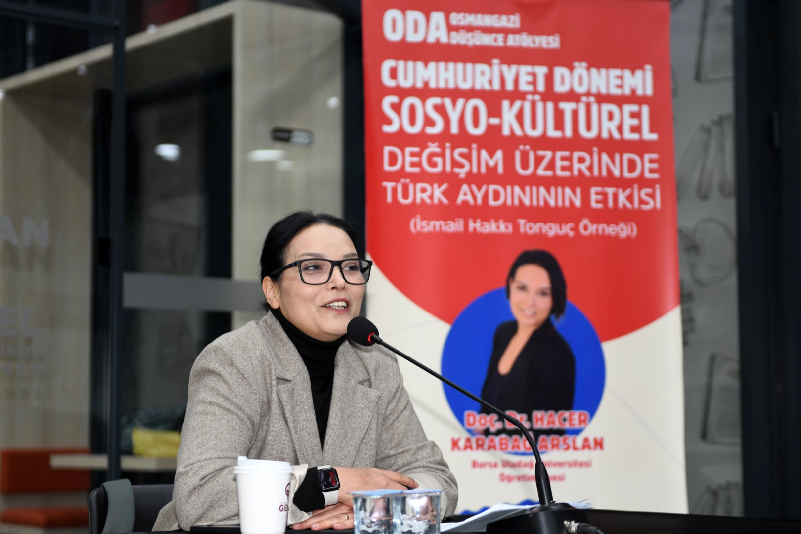 Osmangazi Düşünce Atölyesi tarafından düzenlenen ‘Cumhuriyet Dönemi Sosyo-Kültürel Değişim Üzerinde Türk Aydınının Etkisi’ konulu söyleşide, Köy Enstitülerinin kurucularından İsmail Hakkı Tonguç örneği ele alındı.