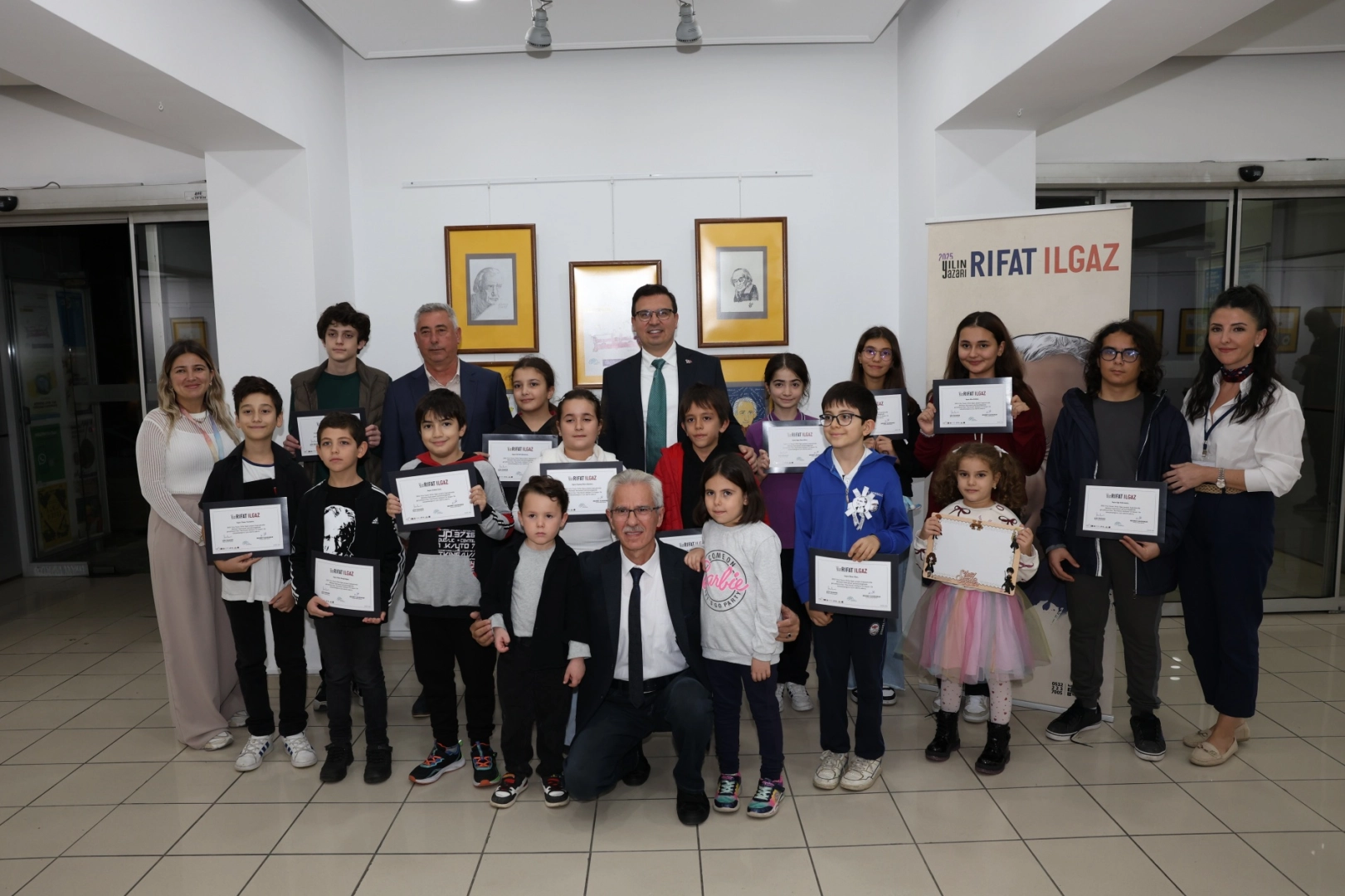 Açılış konuşmalarının ardından Okan Şahin, katkıları için Mehmet Kahraman’a hediye verdi. Etkinlikte çocuklara sertifikaları dağıtıldı. Şahin, sergiyi gezerek çocukların karikatürlerini de inceledi.