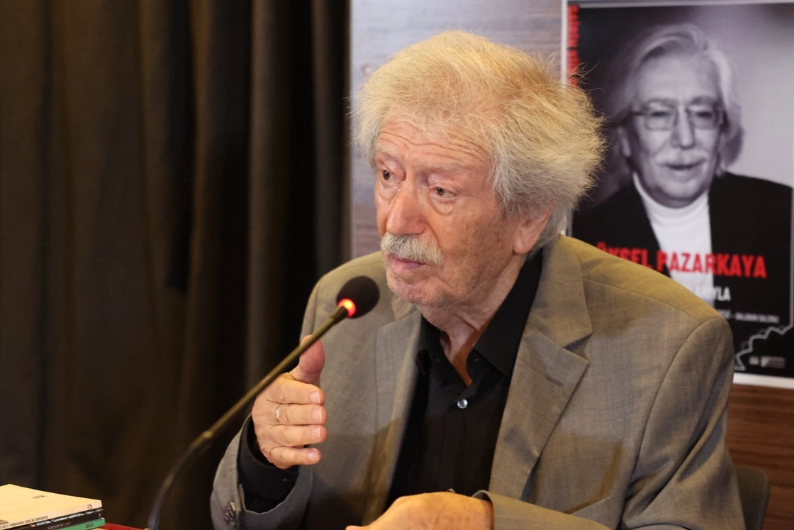 Aydınlık Kanayan Çiçek isimli kitabından okumalar yapan Pazarkaya, “Duygu ve düşünce, duruma göre diğerine kararı bırakır. Eserlerimde somut şiire çok kez yer verdim. Somut şiir geleneği antik Yunan dönemine kadar giden görsel çalışmadır. Hitler zamanı dil istismara uğradı, kirlendi. Bundan kurtulmak için harfleri ve sözcükleri temizleyerek yeniden işe başlamak gerekir. Geleneksel şiirlerine biçimsel yenilikler getirdi. Dili tazelemek ve yenilemek, kirinden temizlemek anlamına gelir. Şiir asla bitmez, tükenmez. Şiir okuruyla kendini yenileyerek yolculuğuna devam eder” diye konuştu.