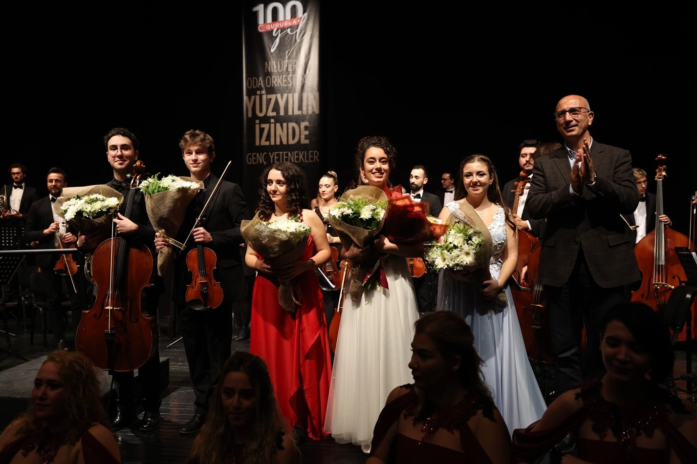 Nilüfer Belediyesi’nin düzenlediği Cumhuriyet’in 100. etkinlikleri kapsamında bu kez Nilüfer Oda Orkestrası sahne aldı. ‘Yüzyılın İzinde Genç Yetenekler’ konseriyle Uğur Mumcu Sahnesi’nde performans sergileyen Nilüfer Oda Orkestrası izleyenleri bir kez daha kendine hayran bıraktı. Şef Deniz Tan yönetiminde sahne alan dev orkestrada, genç yetenekler solist olarak yer aldı.