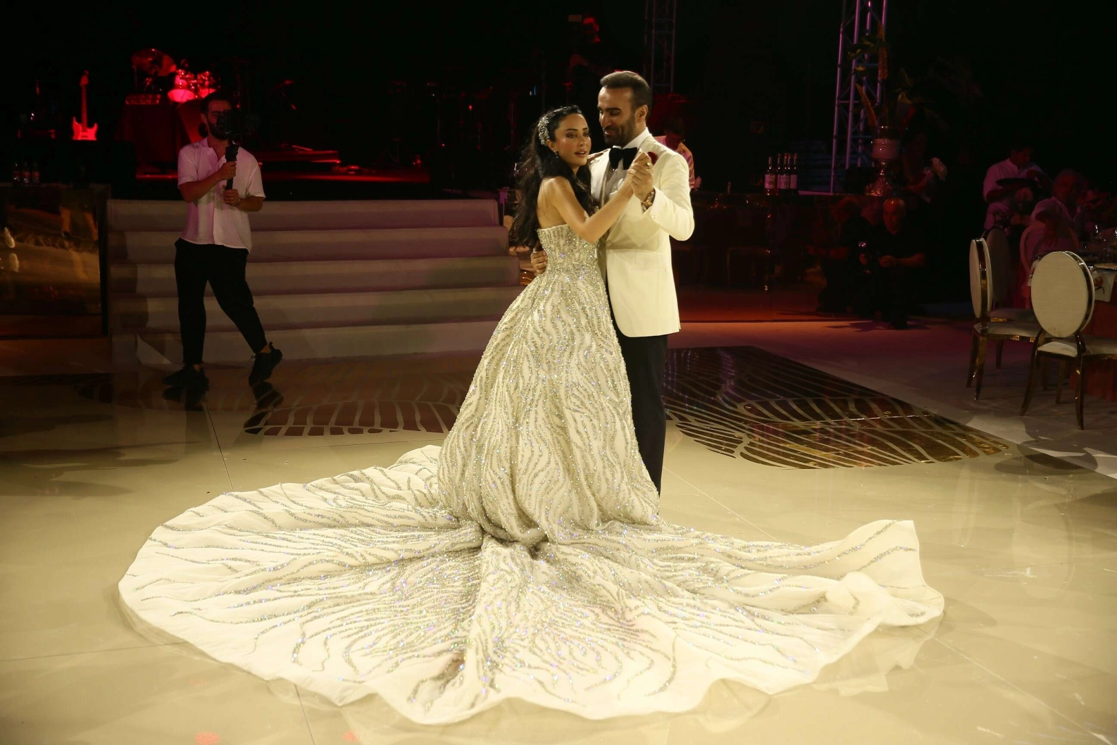 Tasarımcısı Merve Karaman olan, 3 milyon lira değerindeki gelinlik, Hindistan’da komple Swarovski taşlarla işlenerek Türkiye'ye getirildi. 65 kilo ağırlığındaki gelinliği, 45 kilo olan gelin taşıdı.