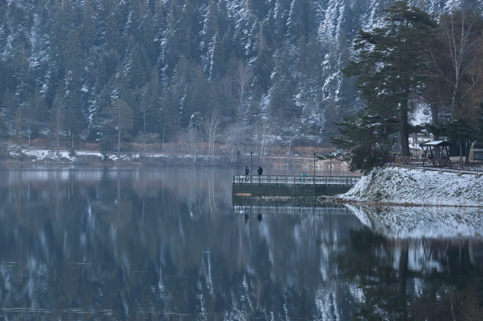 Bolu’nun doğa harikası Abant Gölü Milli Parkı’ndaki gölün kıyıları soğuk hava sebebiyle buz tuttu. Türkiye’nin önemli turistik yerlerinden biri olan Bolu’nun gözdesi Abant Gölü Milli Parkı’nda gece saatlerinde eksi 10 derecelere kadar düşen hava sıcaklığı nedeniyle Abant Gölü’nün kıyıları buz tuttu. Soğuk havada da ziyaretçilerini ağırlamaya devam eden Abant, kış manzarasıyla fotoğraf tutkunlarına kartpostallık manzaralar sundu. Havanın soğuk olmasına aldırış etmeyen vatandaşlar, bölgeyi gezerek bol bol hatıra fotoğrafı çekti.