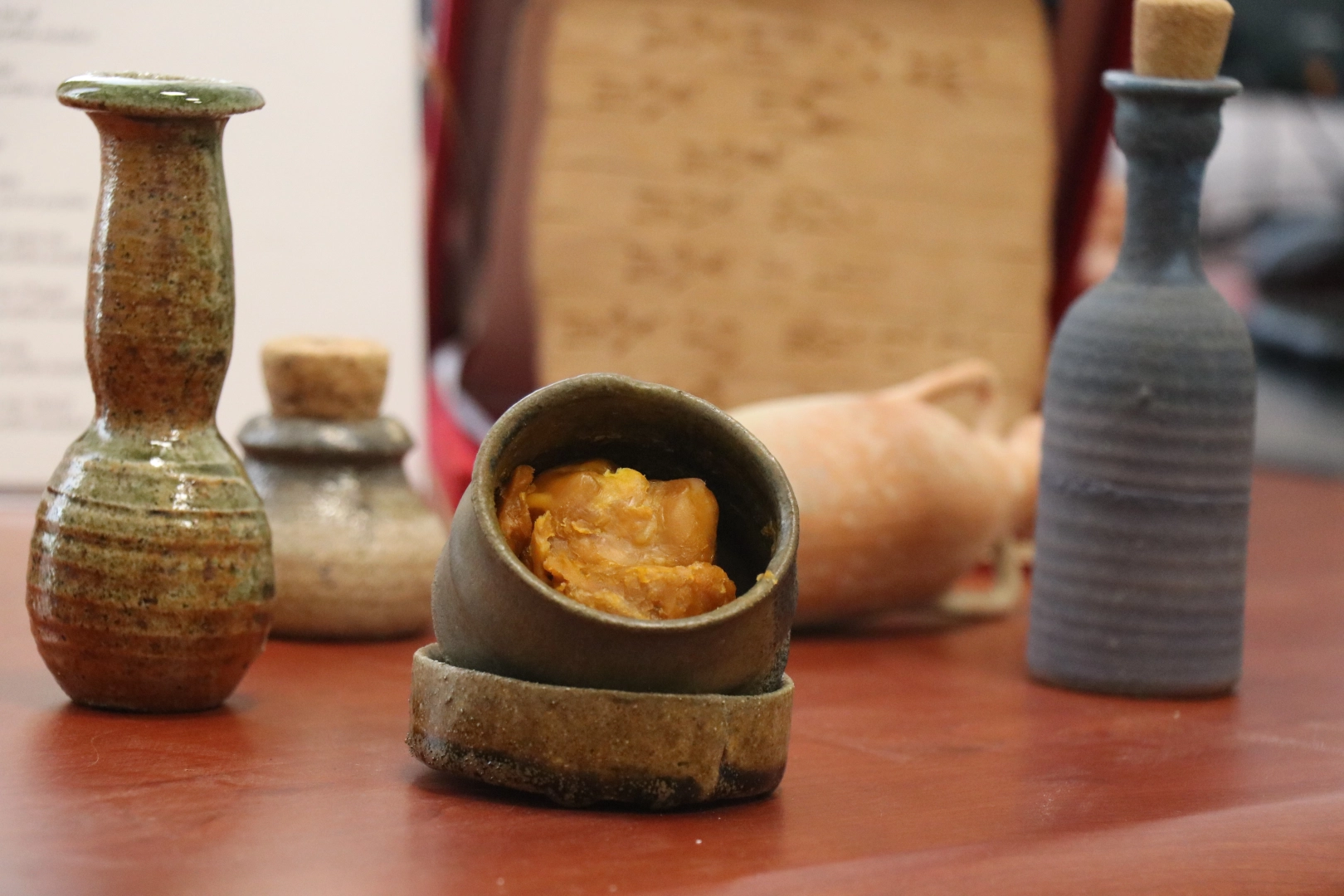 4500 yıllık parfümün özellikleri deyiyen ve parfümün içinde gül, safran, misk, amber gibi tarz kokuların barındığını belirten Doktora Öğrencisi olan Meryem Karakurt Göksal, “Parfüm özellikleri içerik olarak ham maddelerinde o dönemde nasıl kullanıldıysa yani antik dönemden bugüne yansıyan kokuların aslında zaman ve mekan değişse de kokunun ve kokuyu oluşturan ham maddelerin hiçbir zaman değişmiyor. Kullanım alanlarının o dönemdeki insanların da çok iyi bildiğini yapılan çalışmalar sonucunda öğrendik. İçerisindeki ham maddeler bugün lüks olarak adlandırabilecek gül, safran, misk, amber bu tarz kokuların barındırdığını belirtmek isterim” dedi.