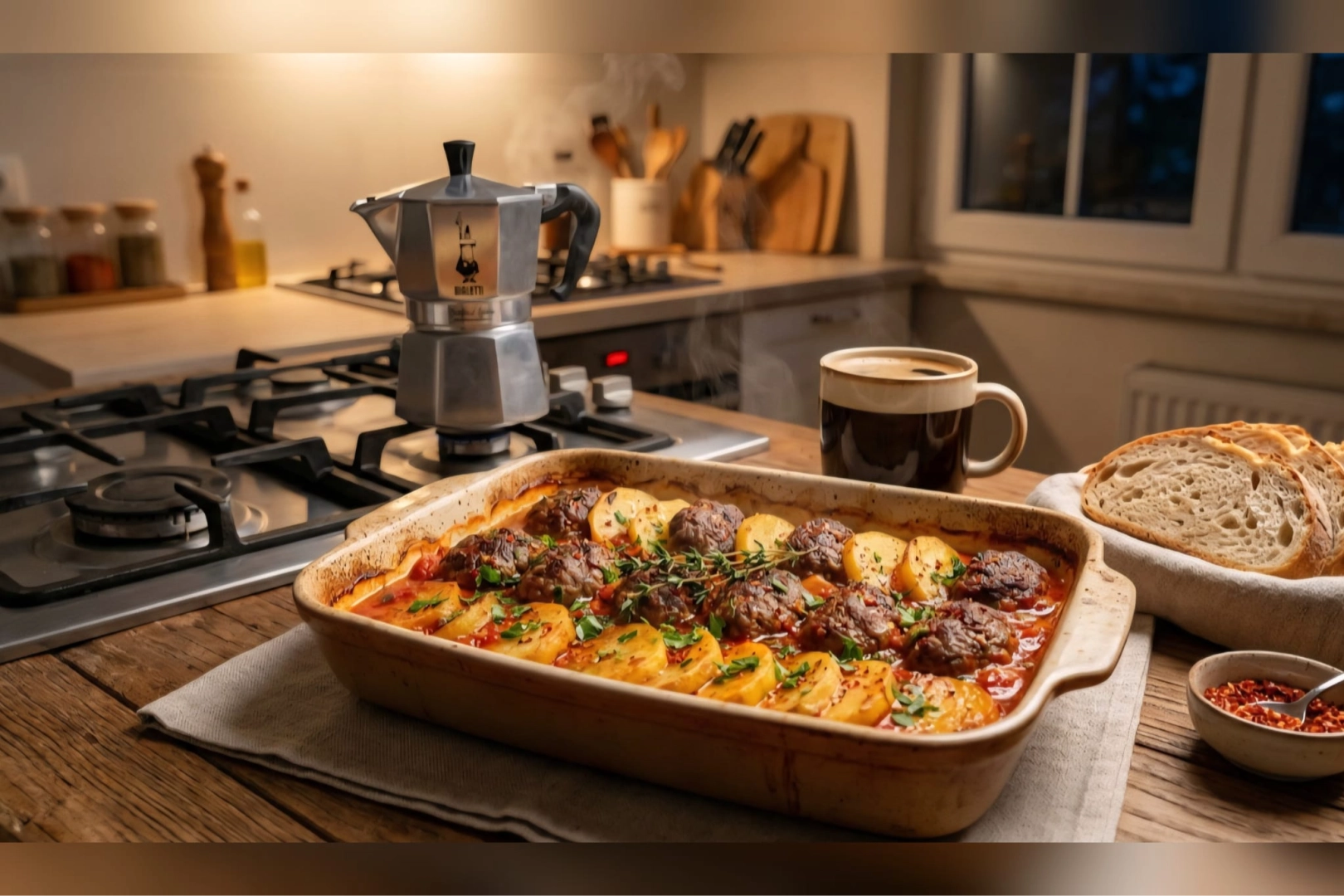 Pazar akşamı mutfakta saatlerce vakit harcamak istemeyenler için bu tarif tam bir kurtarıcı. Klasik anne köftesinin samimiyetini, fırında ağır ağır pişen patateslerin yumuşaklığı ve domates sosunun nefis kokusuyla birleştiriyoruz. Yanına hazırlayacağınız tane tane dökülen bir pirinç pilavı ve ferahlatıcı bir cacıkla, tatilin kapanış yemeğini bir şölene dönüştürebilirsiniz.