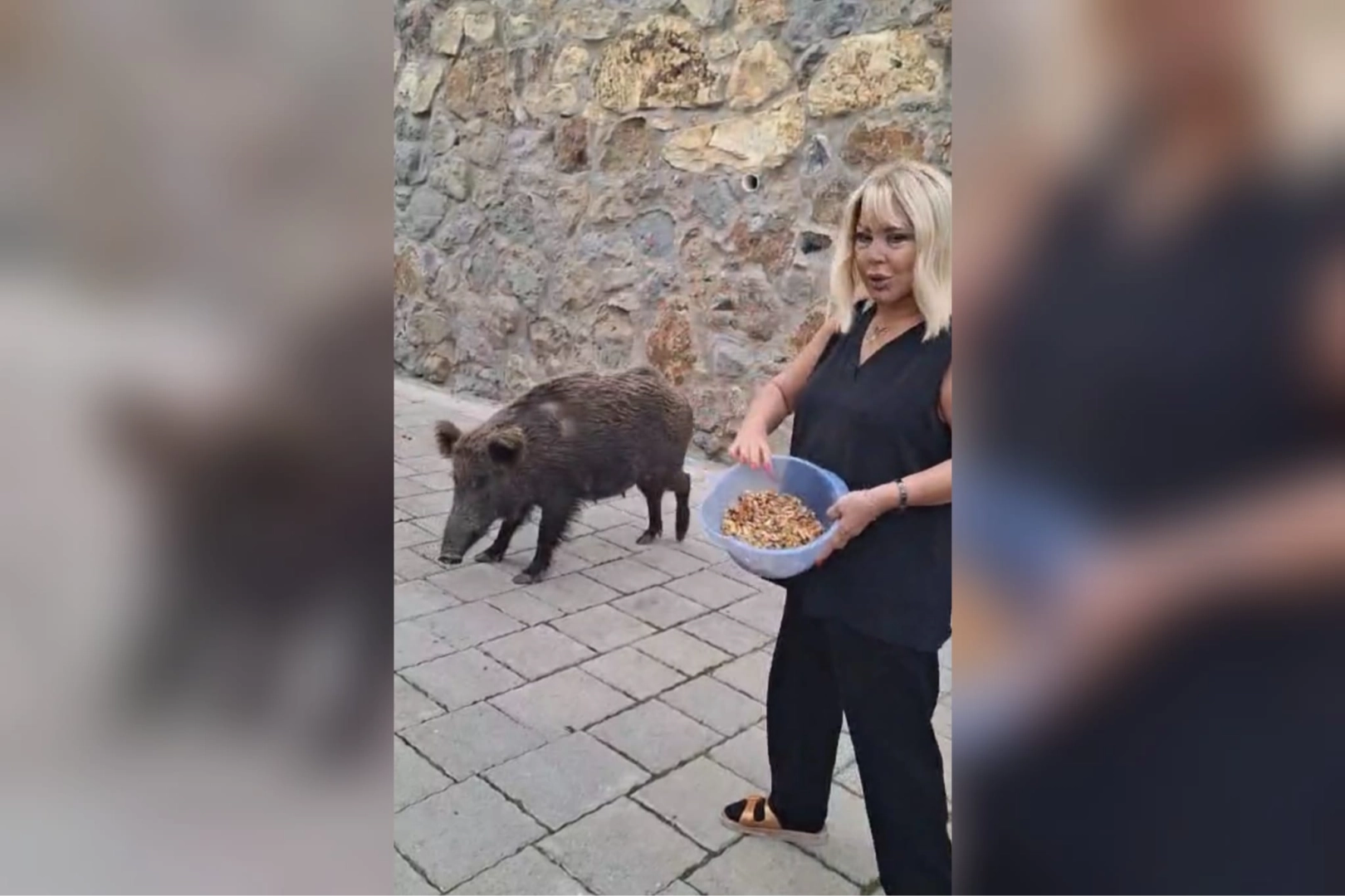 Ramazan Bayramı tatilini Bodrum'da geçiren ünlü sanatçı Safiye Soyman, kapısının önüne kadar gelen yaban domuzuyla yaşadığı ilginç anlarla gündeme geldi. Bayram tatilinde Bodrum'daki evinde bulunan Soyman'ın karşısına çıkan yaban domuzu, kısa sürede ilginç görüntülerin ortaya çıkmasına neden oldu. Ünlü sanatçı, domuzu elleriyle beslerken o anlar cep telefonu kamerasına yansıdı. Görüntülerde, Soyman'ın domuza ceviz verdiği ve uzun süre yanında durarak beslediği görüldü. Oldukça sakin davranan sanatçının, domuzun kendisine doğru yönelmesiyle birlikte kısa süreli panik yaşadığı anlar da kaydedildi. Domuzun üzerine doğru gelmesiyle korkan Soyman'ın hızla uzaklaştığı anlar dikkat çekerken, yaşananlar izleyenleri hem şaşırttı hem de gülümsetti. Bodrum'da zaman zaman yerleşim alanlarına kadar inen yaban domuzları, bu kez ünlü bir ismin kapısında görüntülenerek bayramın en dikkat çeken anlarından birine sahne oldu.