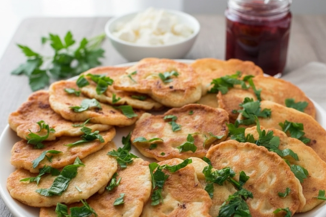 -Tavaya biraz yağ alın ve karışımı kaşık yardımıyla porsiyonlayıp tavada çevirerek pişirin. Her iki tarafı da hafifçe kızarınca tavadan alın ve sıcak sıcak servis edin.